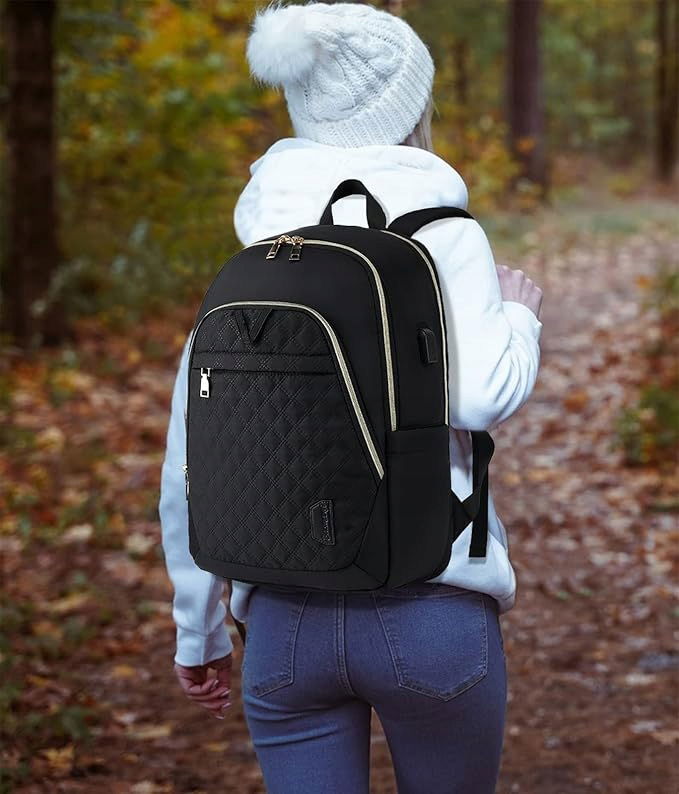 Plecak damski, mały schowek: plecak na laptopa 15 6", kieszeń na laptopa o przekątnej ekranu 15" oraz MacBook 15,6". Kieszeń po bokach torby szkolnej pomieści parasole i butelki z wodą, ponadto w plecaku z kieszenią na laptopa znajduje się wiele małych przegródek. Plecak 15 cali na telefon komórkowy, portfel, przybory do makijażu i wiele innych, idealnie nadaje się do przechowywania różnych przedmiotów, aby uporządkować swoje przedmioty. Wymiary: 45 x 30 x 15 cm, waga: 1,45 kg.