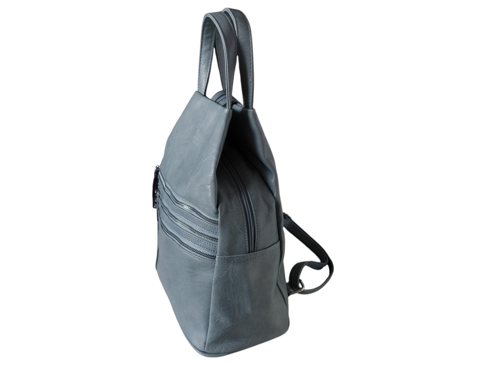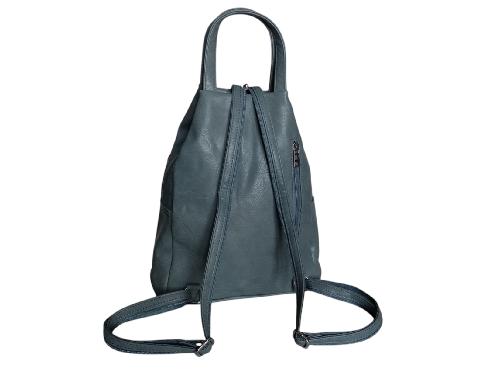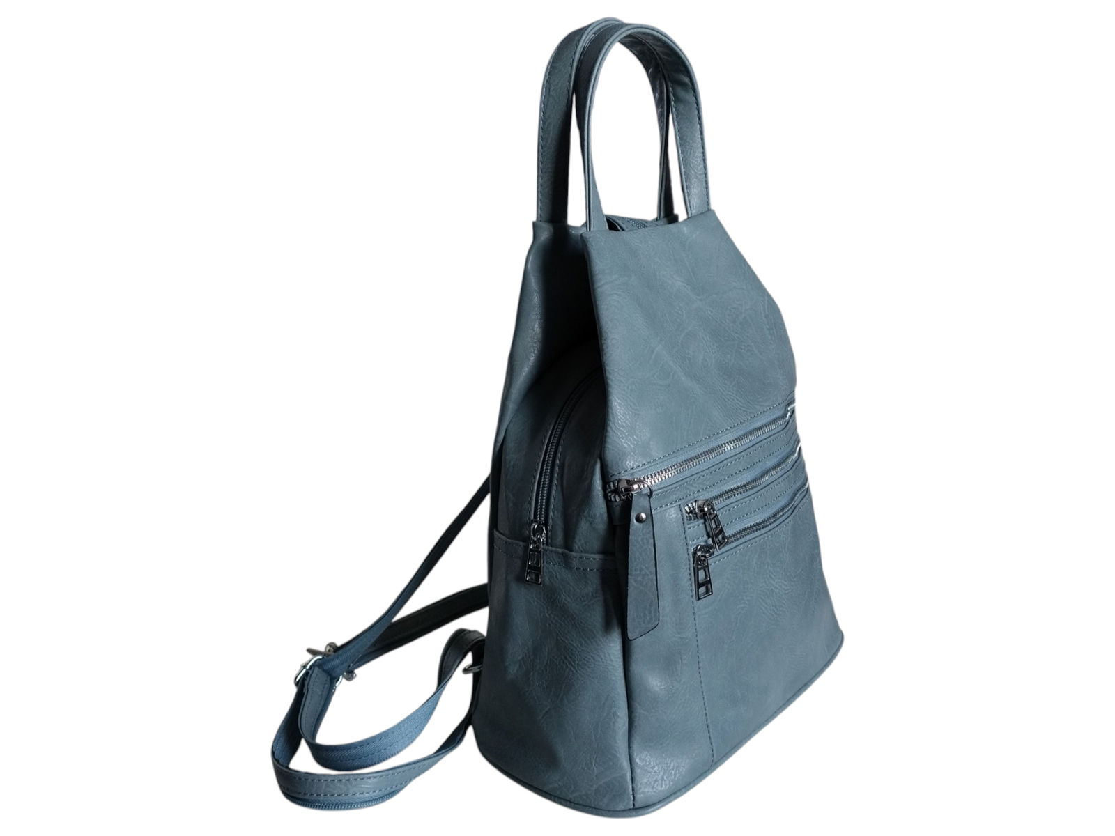 Plecak Damski Worek na Ramię, Eko-Skóra, Miejski, 7 Kieszeni, Niebieski
