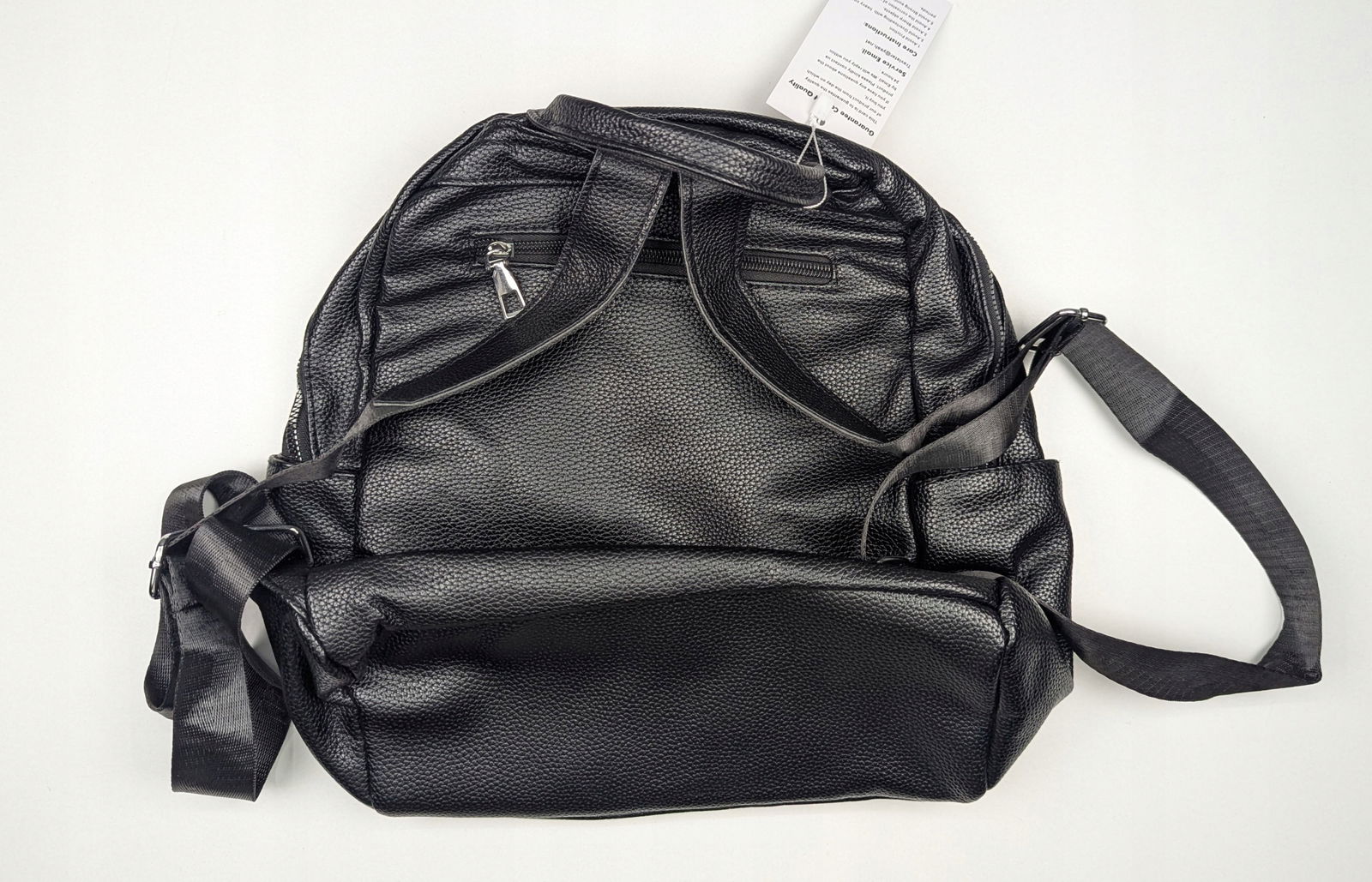 Nowoczesny plecak damski wykonany z wysokiej jakości czarnej ekoskóry, która łączy styl i trwałość. Idealny na co dzień do pracy, szkoły czy na wyjścia, doskonale łączy funkcjonalność z modnym designem.