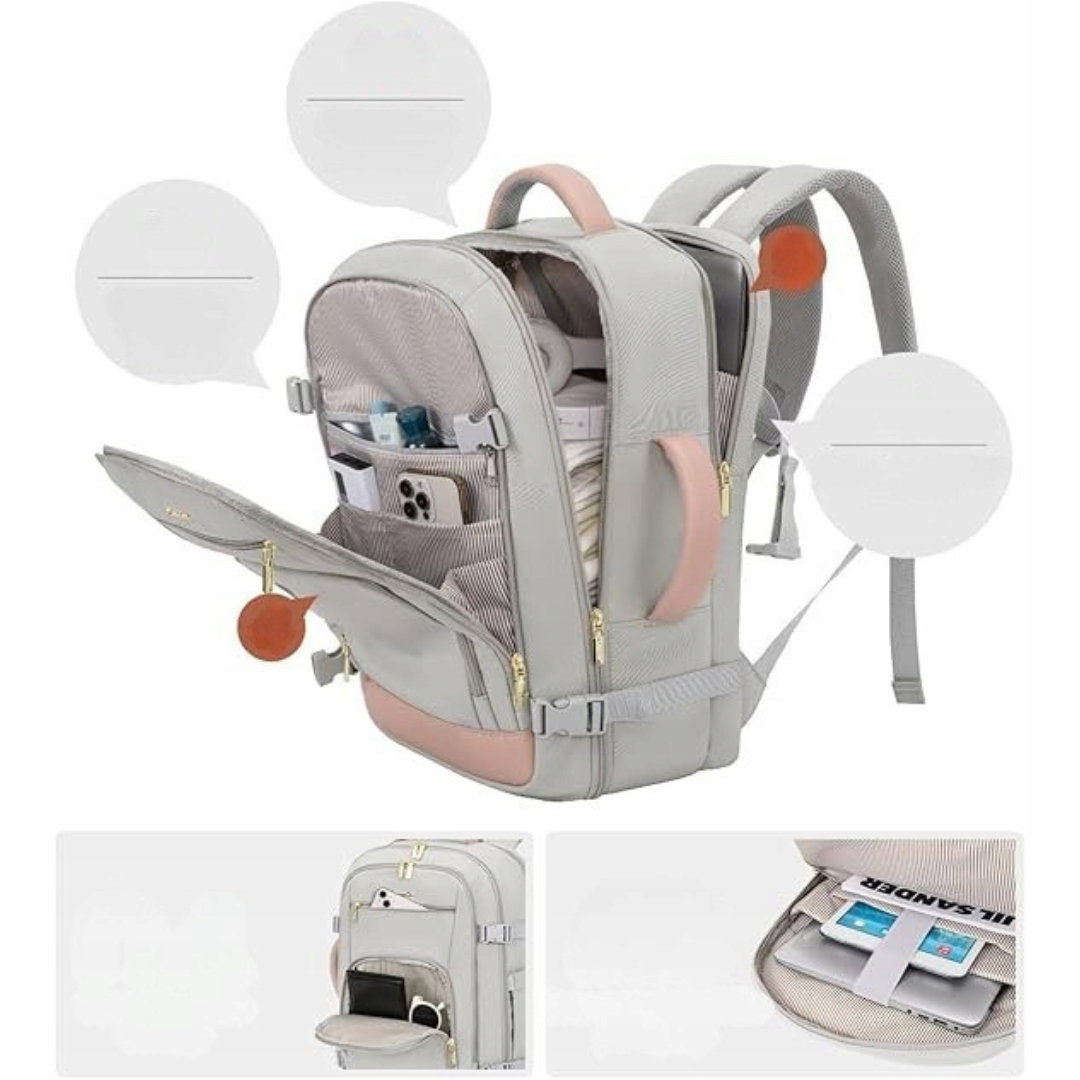 - Zastosowanie: plecak wykorzystywany jest jako bagaż podręczny podczas lotów liniami Ryanair i EasyJet, a także jako plecak na weekendowe wyjazdy, delegacje lub codzienne dojazdy. Sprawdza się w podróży służbowej i rekreacyjnej, umożliwiając wygodne przenoszenie laptopa, dokumentów oraz rzeczy osobistych w jednym miejscu. Może być używany jako praktyczny element wyposażenia podróżnego, zapewniając lepszą organizację bagażu, wygodę noszenia oraz funkcjonalność dopasowaną do wymagań kabinowych.