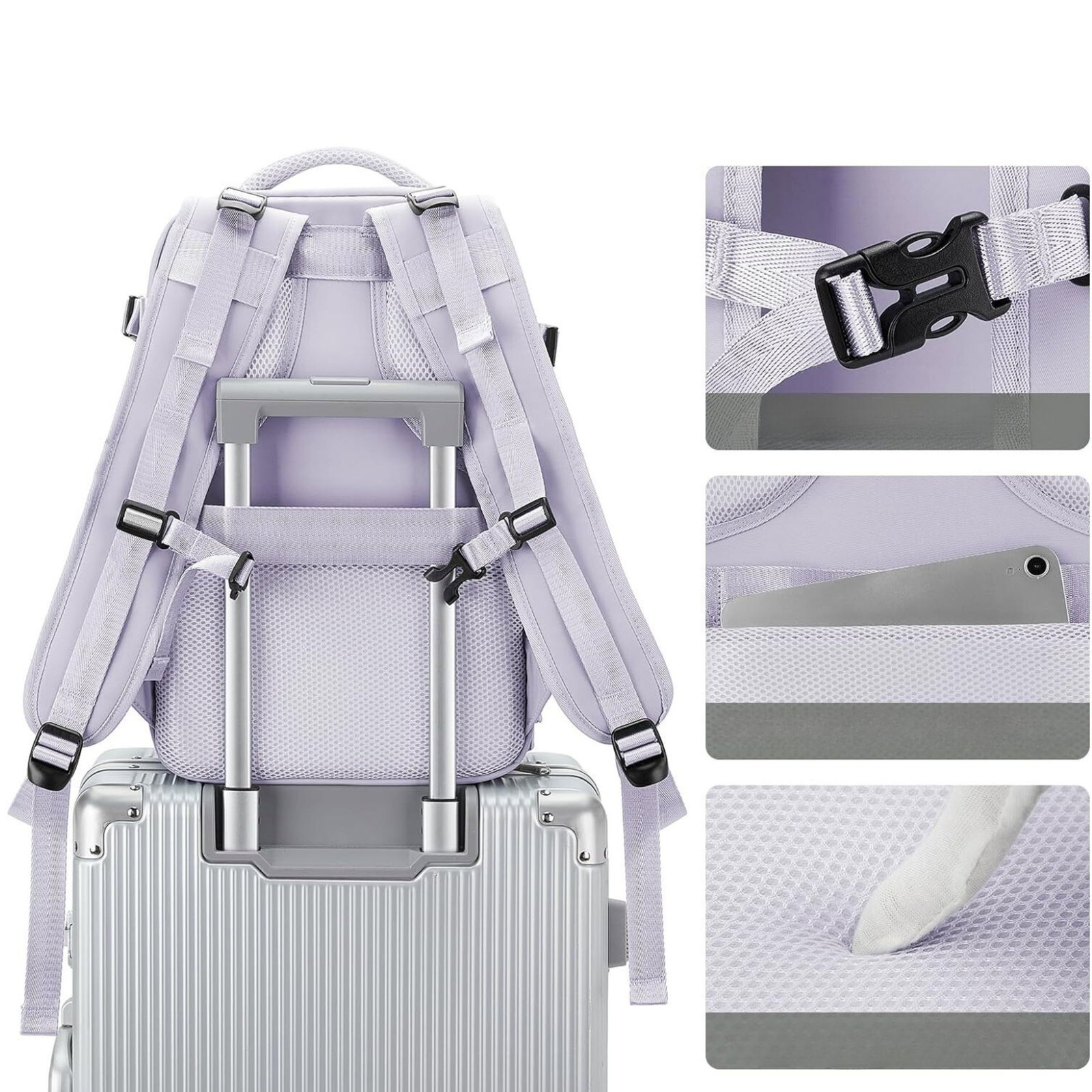 ✅Plecak ma pasek, który pozwala zaczepić go na rączkę walizki, co znacząco ułatwi Ci transport bagaży na lotnisku.