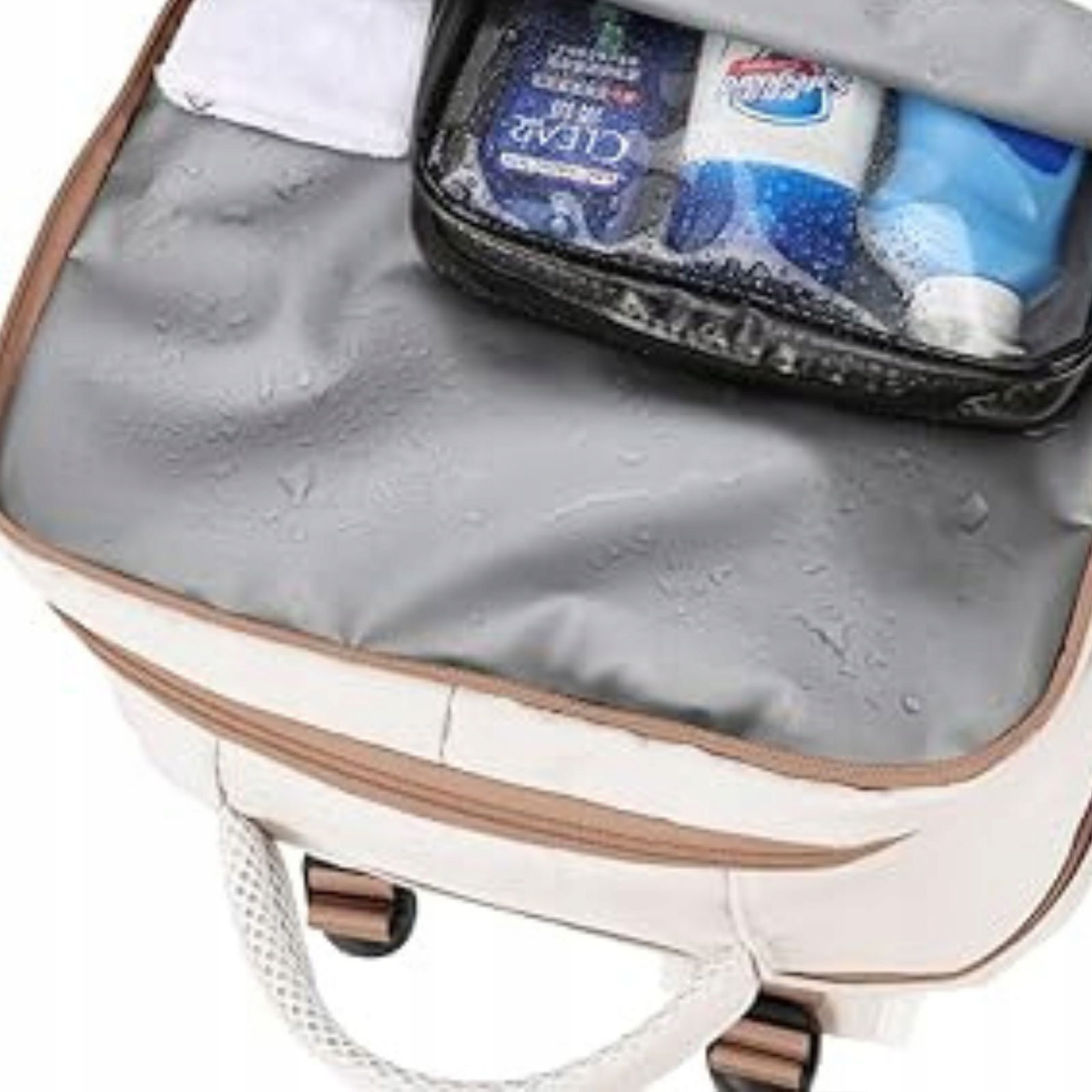✔️ Twoje kosmetyki zasługują na specjalne miejsce. Dlatego nasz plecak wyposażony jest w dedykowaną kieszeń z wodoodpornym materiałem, chroniącą je przed przypadkowym rozlanym płynem w Twoim bagażu.