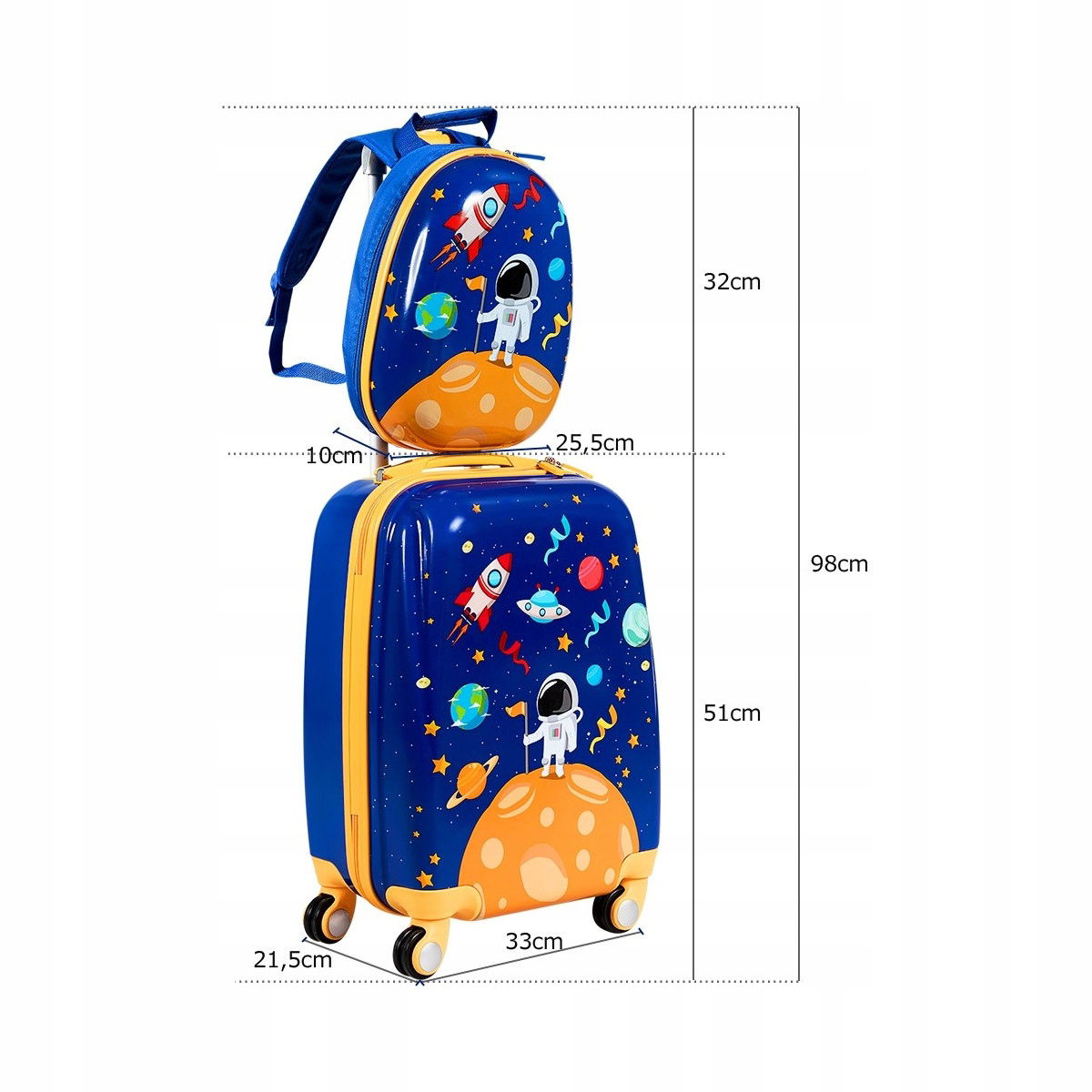 Możliwość regulacji - regulowana wysokość uchwytu walizki oraz możliwość regulacji szelek plecaka ułatwiają dostosowanie zestawu do potrzeb Twojego dziecka