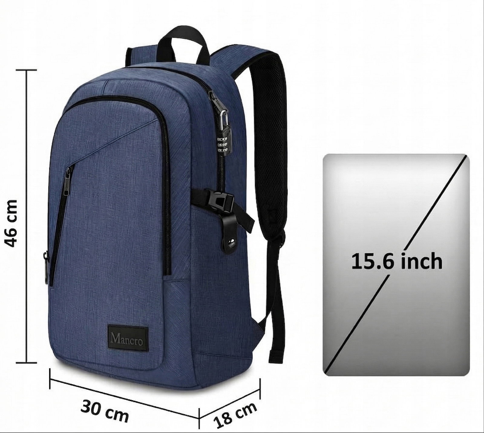 Plecak Antykradzieżowy na Laptopa 15.6" MANCRO USB Wodoodporny