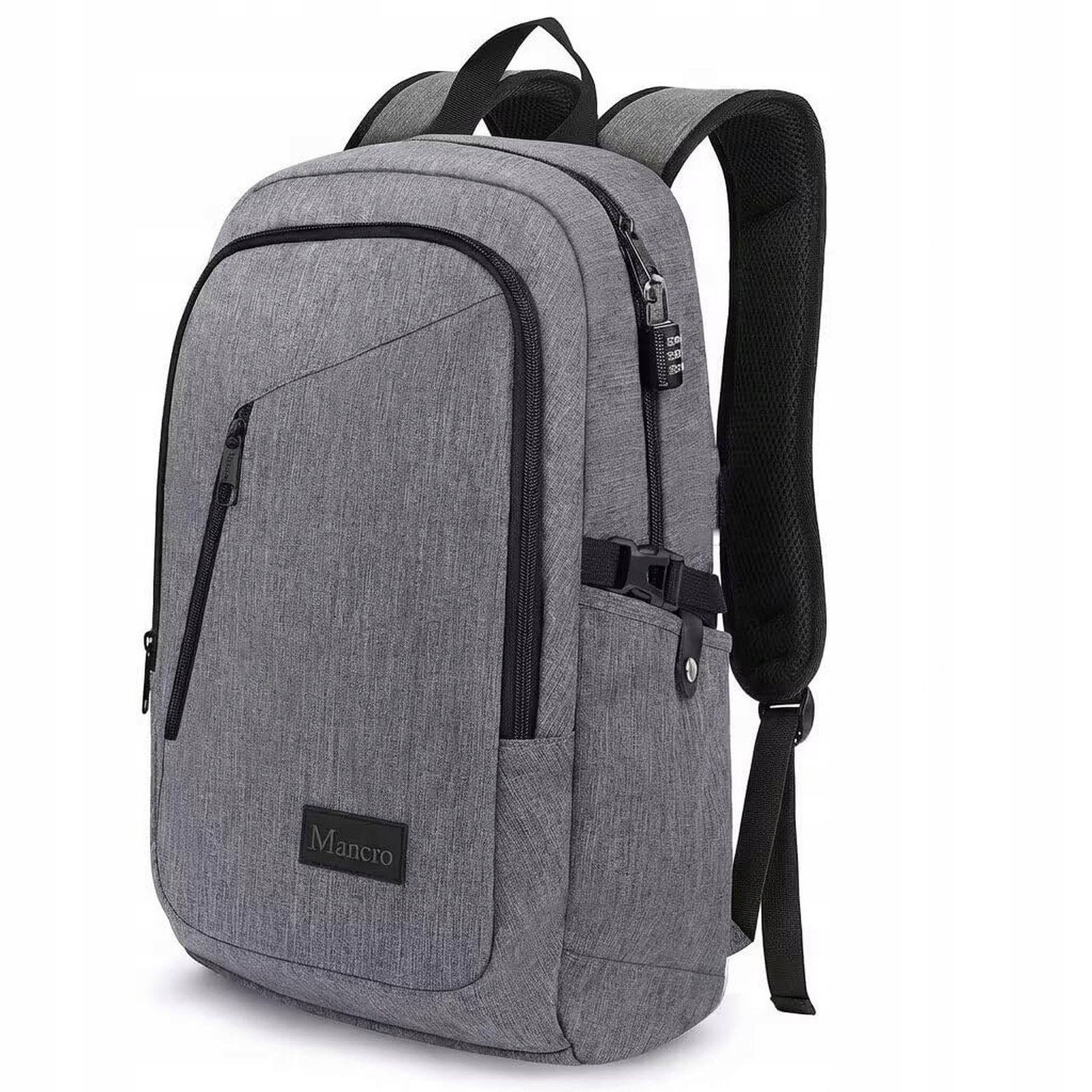 Plecak MANCRO Antykradzieżowy Laptop 15.6" USB Wodoodporny Szary 1006