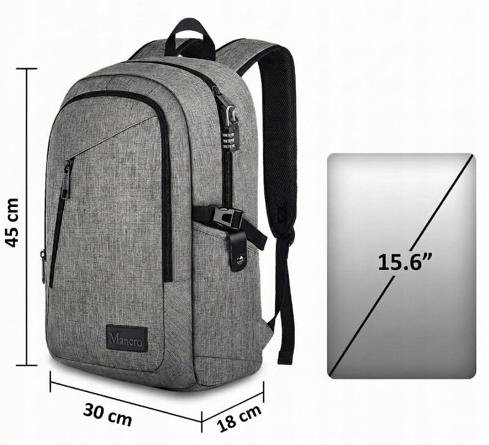 Plecak Antykradzieżowy na Laptopa 15.6" MANCRO USB Wodoodporny