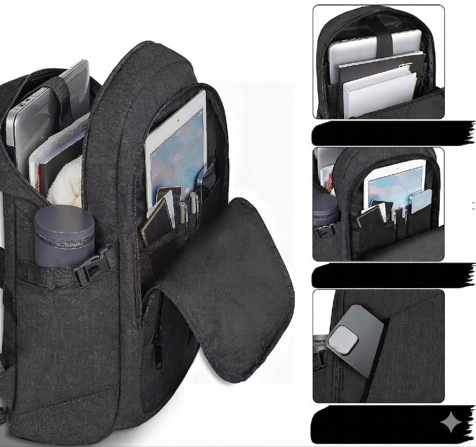 - Doskonała organizacja: Mnóstwo kieszeni na sprzęt, książki i drobne akcesoria.