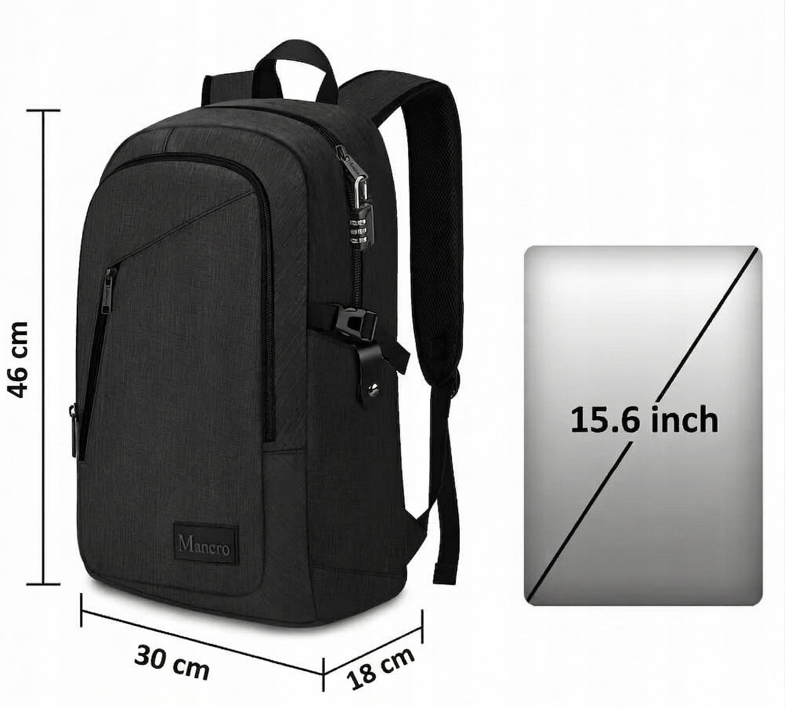 Plecak Antykradzieżowy na Laptopa 15.6" MANCRO USB Wodoodporny