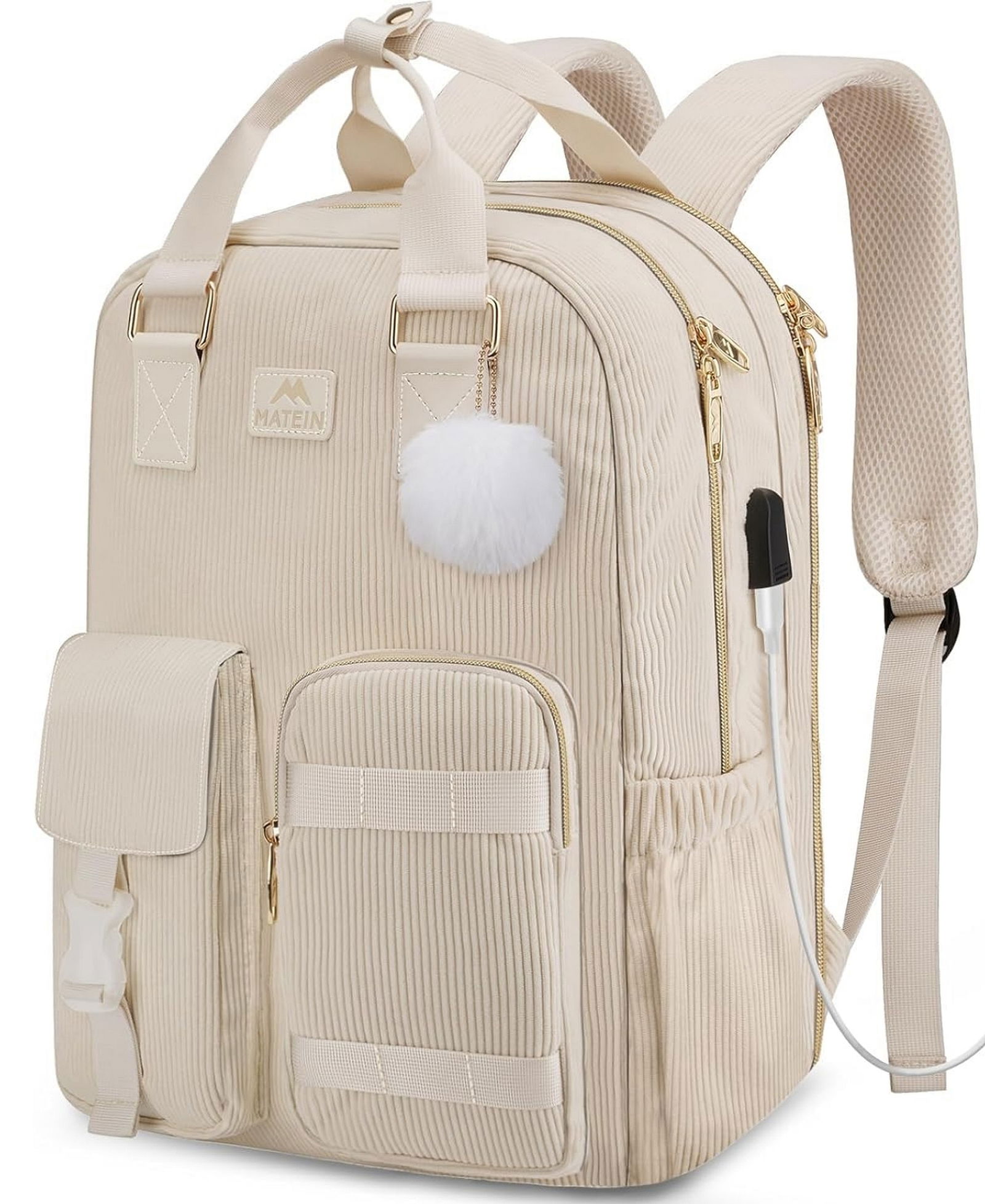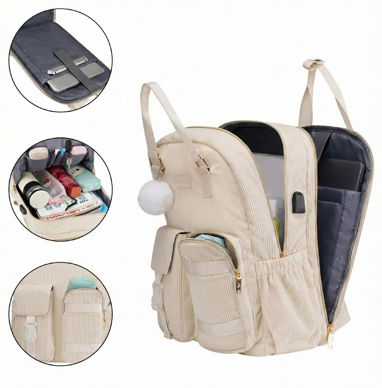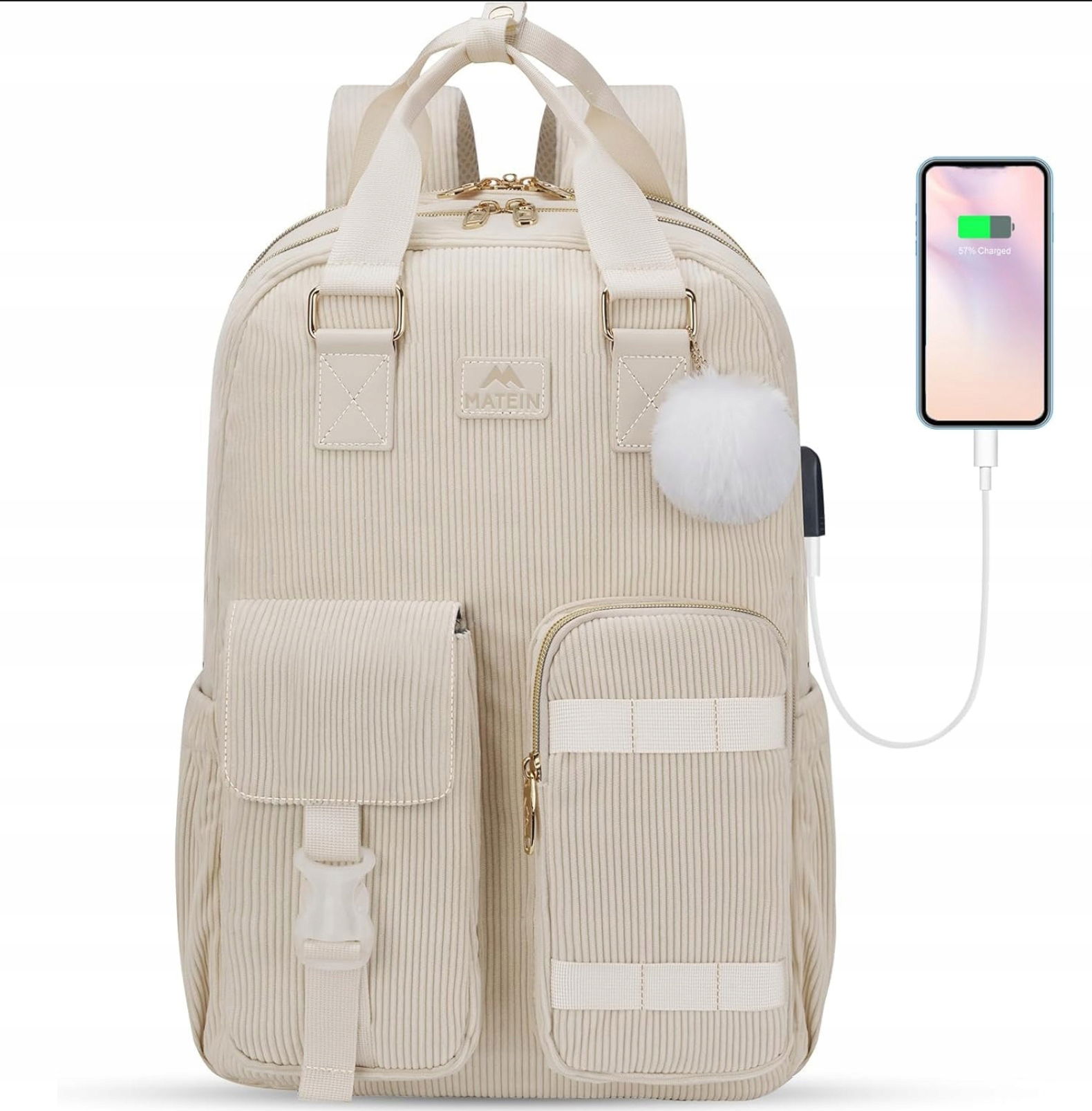 Plecak MATEIN Damski Sztruksowy Laptop 15.6" USB Podróżny 1429
