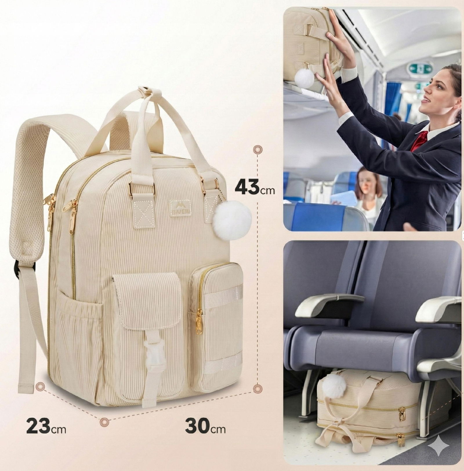 - Idealny do Samolotu (Flight Approved): Wymiary plecaka zostały zaprojektowane tak, aby zmieścił się pod fotelem w samolocie, spełniając wymogi bagażu podręcznego większości linii lotniczych.