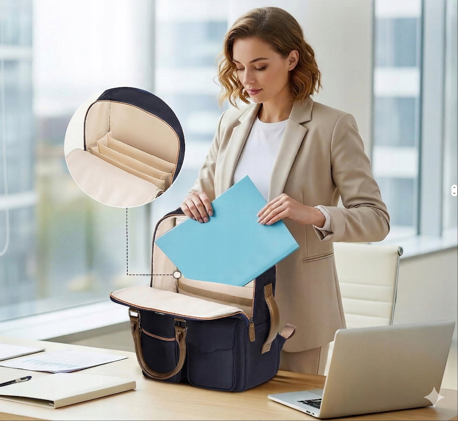 - Innowacyjny system "Harmonijkowy" (Accordion File Folder): Koniec z pogniecionymi dokumentami! Przednia komora plecaka rozkłada się niczym harmonijka, oferując genialnie zaprojektowane przegrody. Idealnie nadaje się do uporządkowania teczek roboczych, dokumentów A4, notatników oraz książek.