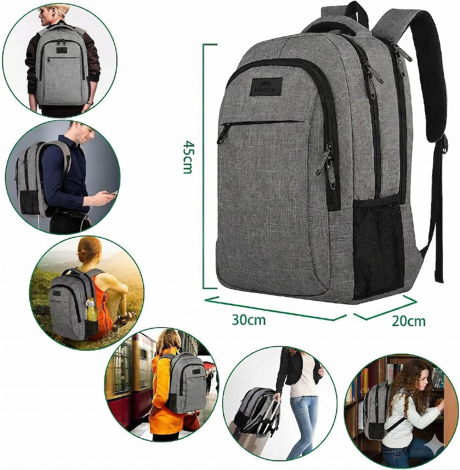 Plecak MATEIN na laptopa 15.6" USB 3 Komory biznesowy miejski SZARY 1007