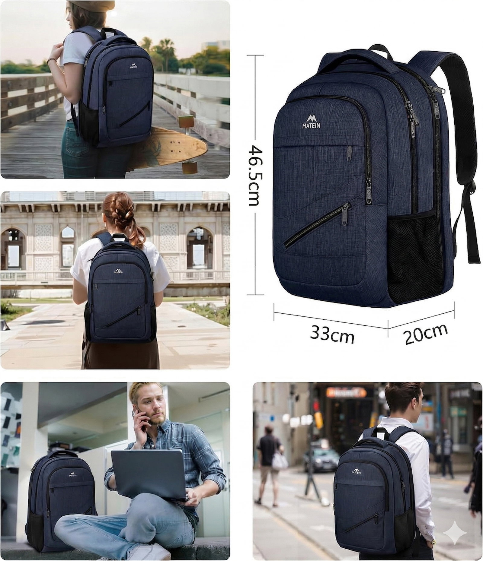 Plecak MATEIN na laptopa 17,3" USB 3 Komory biznesowy NIEBIESKI 1035