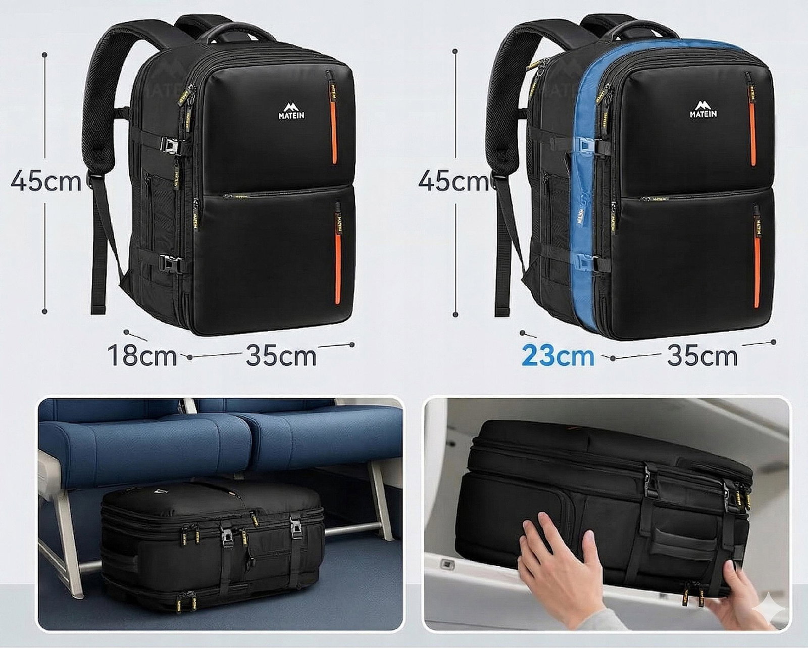 Szukasz idealnego towarzysza w podróży, który pomieści wszystko, czego potrzebujesz na kilkudniowy wyjazd, a jednocześnie bez problemu zmieści się pod fotelem w samolocie? Poznaj wielofunkcyjny plecak MATEIN (1746). To sprytne połączenie pojemności małej walizki z wygodą klasycznego plecaka, wzbogacone o modułowe elementy i nowoczesne rozwiązania technologiczne.