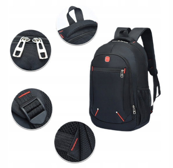 Plecak Męski Damski do Pracy Szkoły Wodoodporny Sport Czarny Mocny P19