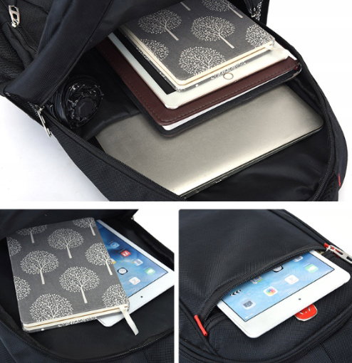 Plecak Męski Damski do Pracy Szkoły Wodoodporny Turystyczny Sportowy Czarny Mocny Pojemny