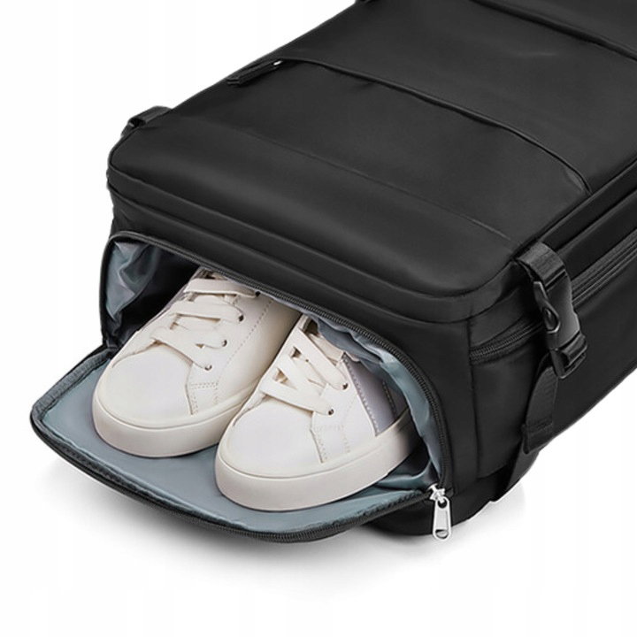 ✔️ Odkryj ukrytą kieszeń na buty! Ta inteligentnie zaprojektowana przestrzeń pomieści jedną parę butów, oddzielając je od reszty Twoich rzeczy, co zapewnia czystość i świeżość. Idealna do przechowywania butów na WF, trening lub zmianę obuwia w ciągu dnia.