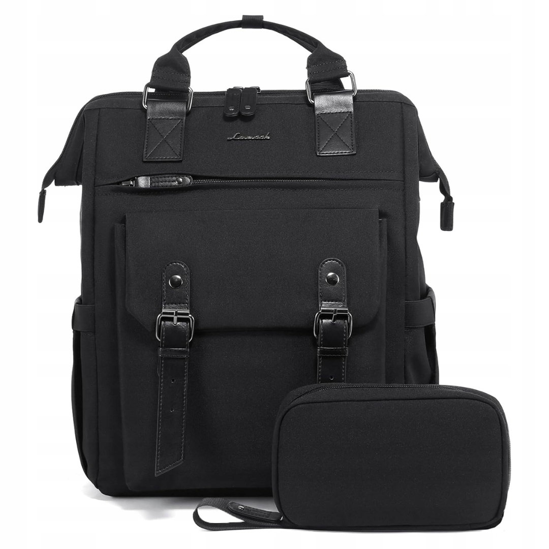 LOVEVOOK damski wodoodporny plecak szkolny dla dziewcząt i nastolatków, szkolny plecak z kablem do transmisji danych, plecak na laptop 15,6 cala do szkoły, na studia, do pracy biurowej i w podróży, czarny.