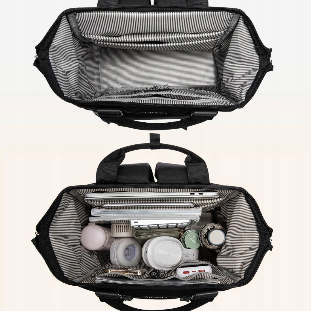 - Możliwość użycia jako bagaż podręczny: wyposażony w pas do mocowania na walizce, co ułatwia podróżowanie, a rozmiar umożliwia umieszczenie plecaka pod siedzeniem w samolocie.