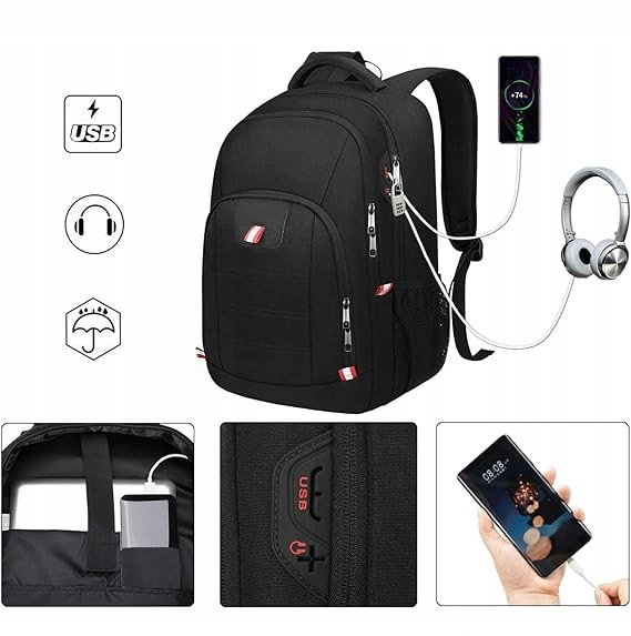 Plecak na Laptopa Duży Podróżny USB 44 cm Biznesowy Della Gao CZARNY