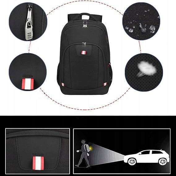 - Bezpieczeństwo: główna komora została wyposażona w zamek z możliwością zabezpieczenia kłódką szyfrową, co pomaga chronić zawartość przed niepowołanym dostępem. Dodatkowe elementy odblaskowe zwiększają widoczność użytkownika po zmroku. Konstrukcja plecaka została zaprojektowana z myślą o bezpiecznym przechowywaniu laptopa oraz cennych przedmiotów.