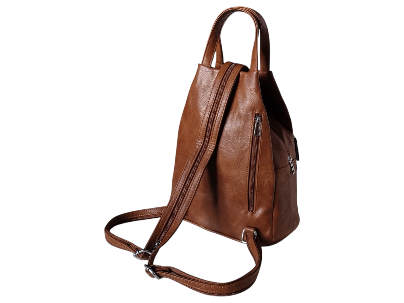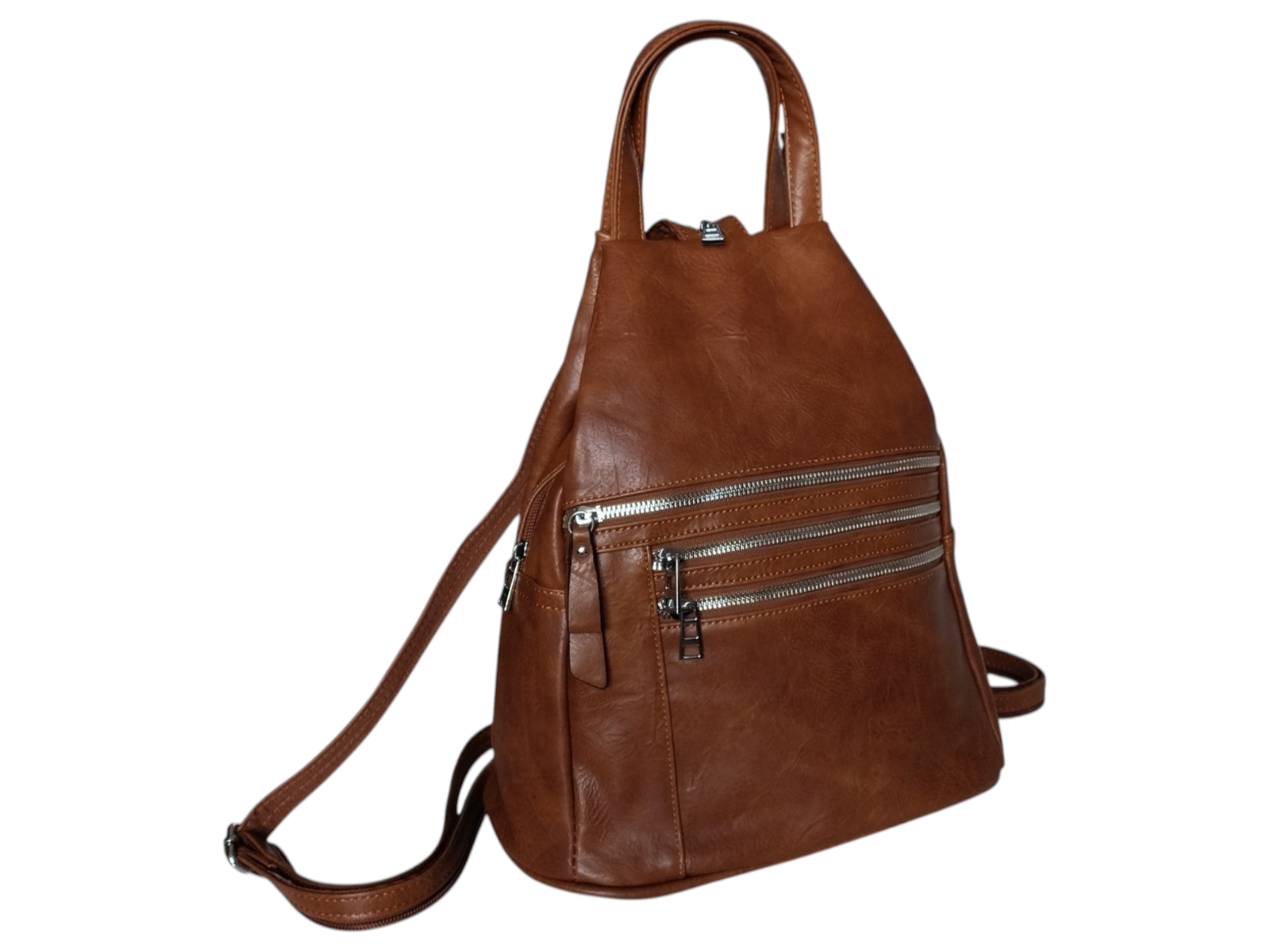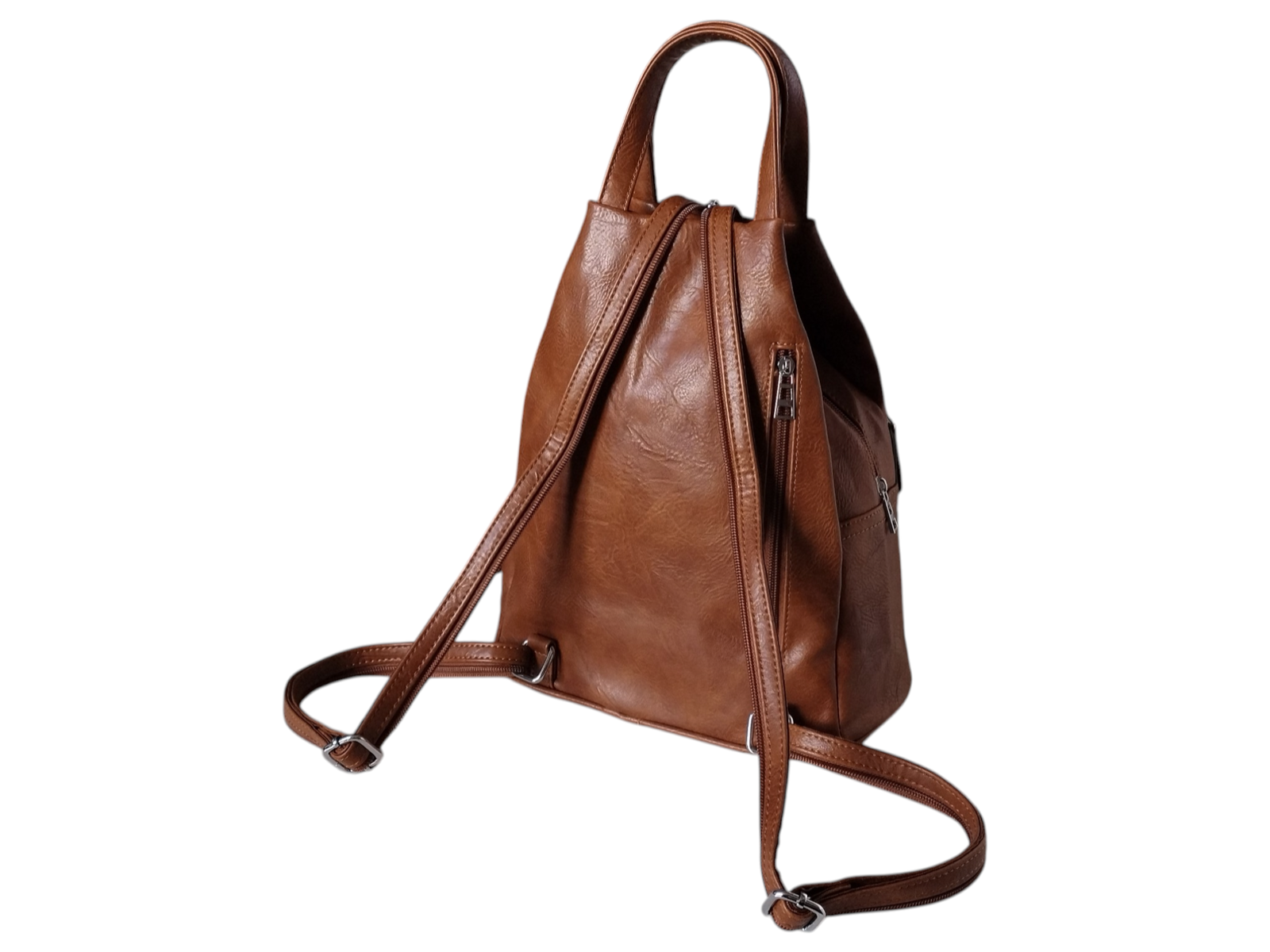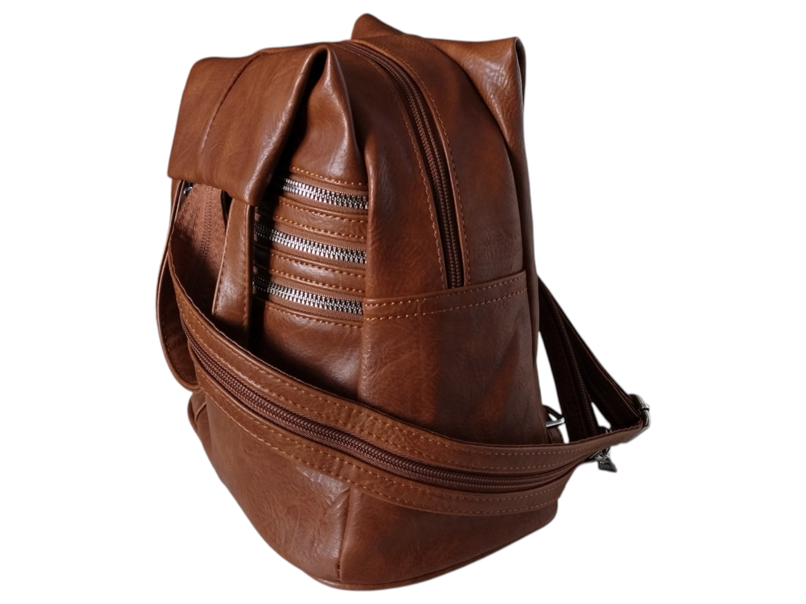 Plecak na Ramię, Miejski Worek Damski, Skóra Eko, 7 Kieszeni, Brązowy
