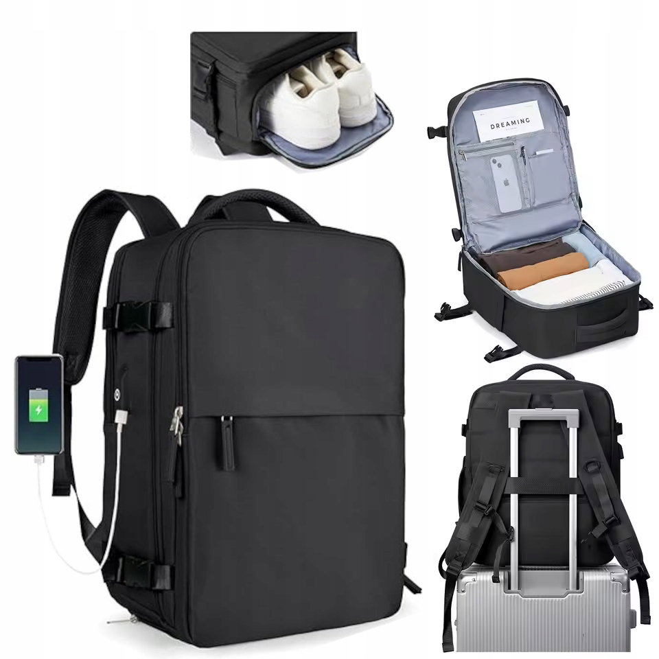 ▶️PLECAK PODRÓŻNY DO SAMOLOTU BAGAŻ PODRĘCZNY MOCNY 40x30x20 WODOODPORNY USB