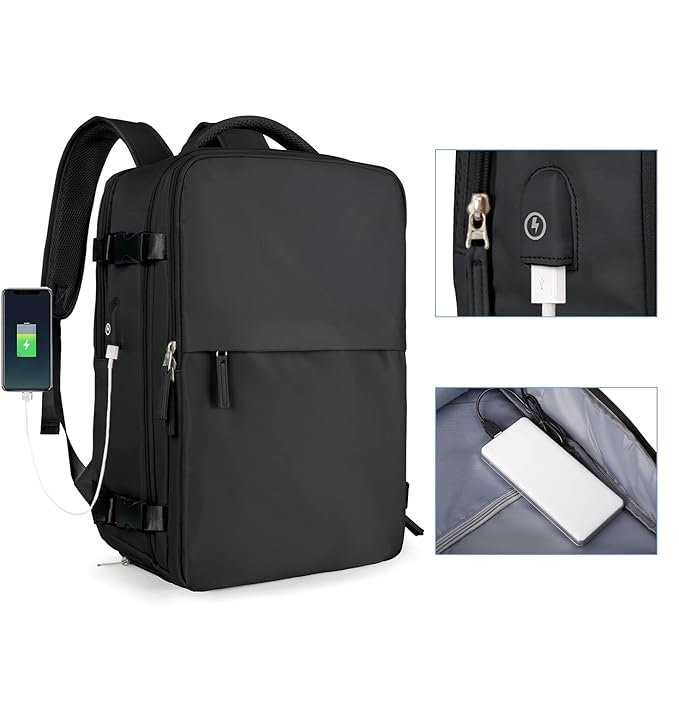 ✅Plecak podróżny wyposażony jest w zewnętrzny port USB, który umożliwia ładowanie telefonu, tabletu i innych urządzeń. Wystarczy podłączyć wewnętrzny kabel USB do powerbanku, aby uzyskać zasilanie na zewnątrz. Długość kabla USB wynosi 50 cm.