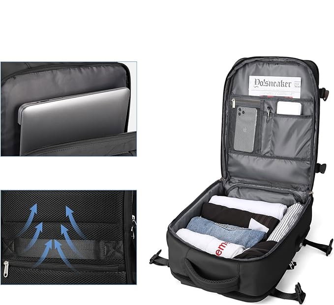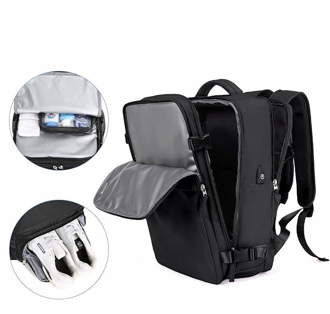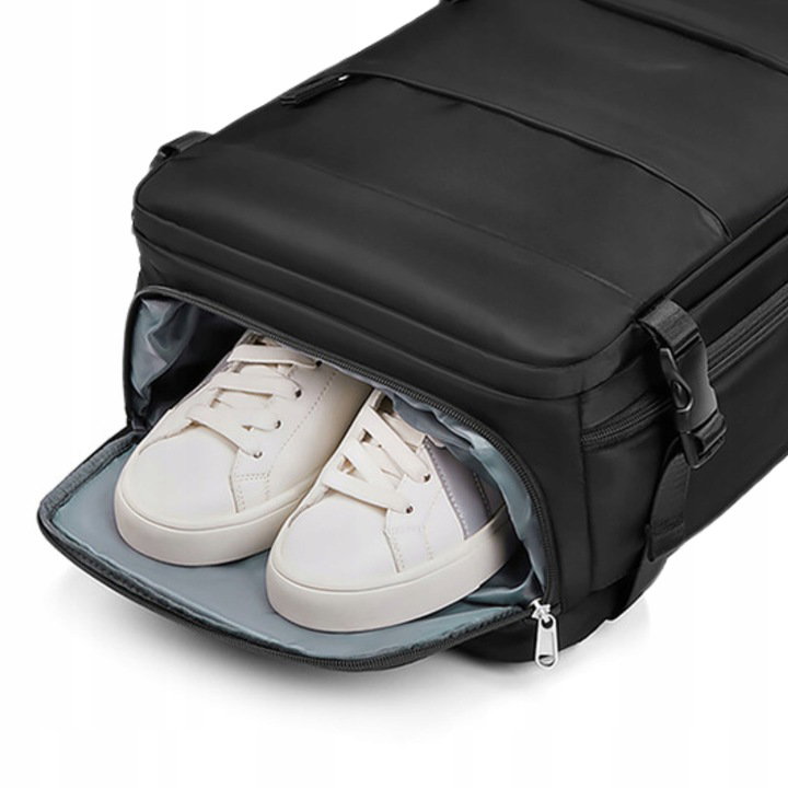 ✅Plecak podręczny posiada ukrytą kieszeń na buty, która pomieści jedną parę obuwia. Dzięki oddzieleniu od reszty rzeczy, masz pewność, że pozostaną czyste i bezpieczne. Specjalne otwory wentylacyjne zapewniają cyrkulację powietrza, co utrzymuje świeżość.