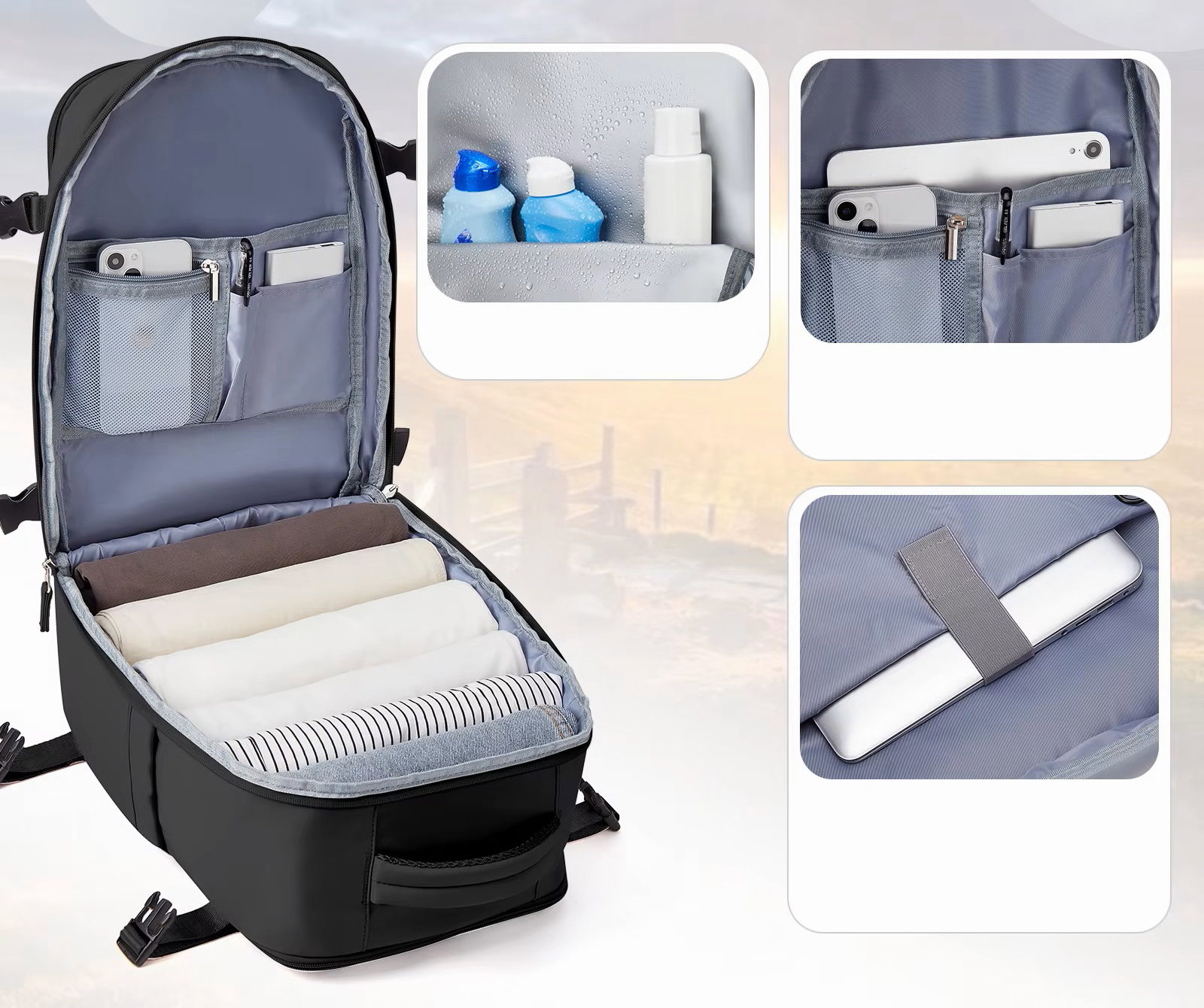 ✅Szeroki kąt otwarcia 180° - plecak kabinowy otwiera się pod kątem 180°, co umożliwia szybki i wygodny dostęp do wnętrza. Pakowanie i rozpakowywanie zajmie tylko chwilę.