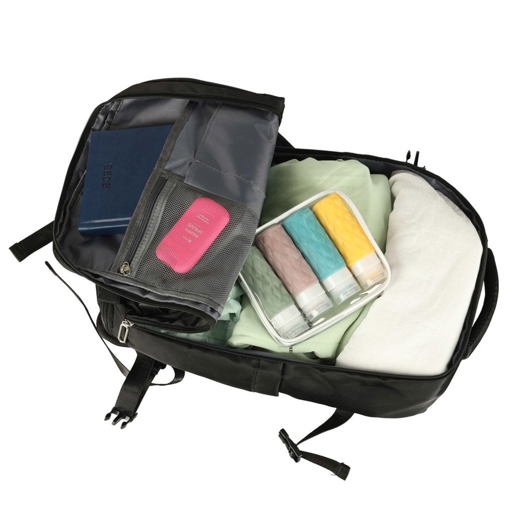 IDEALNY NA KAŻDĄ PODRÓŻ - Wielofunkcyjny plecak podróżny sprawdzi się doskonale podczas pieszych wycieczek, wypadów w góry czy codziennych wyjazdów. Dzięki wodoodpornemu materiałowi nie musisz martwić się o nagłą zmianę pogody, a 4 pasy kompresyjne pozwolą zmniejszyć objętość plecaka, gdy jest nie w pełni zapakowany. Duża liczba kieszeni pozwala wygodnie rozmieścić niezbędne akcesoria, dzięki czemu szybko znajdziesz to, czego potrzebujesz w trakcie podróży.