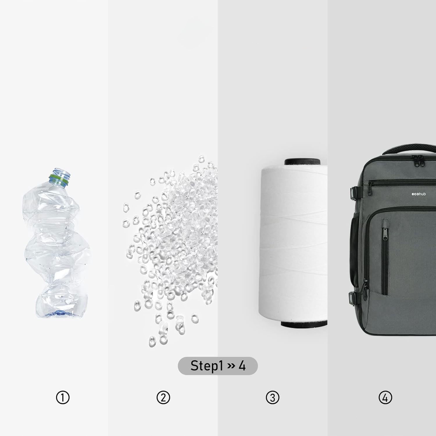 Torba ECOHUB wykonana jest z tkaniny pochodzącej z recyklingu aż 30 plastikowych butelek PET, co czyni ją wyborem przyjaznym środowisku. Materiał jest wodoodporny, trwały i posiada certyfikat GRS (Global Recycled Standard). Wyposażona w wytrzymałe zamki marki SBS i wzmocnione szwy ripstop – torba jest stworzona z myślą o długotrwałym użytkowaniu.