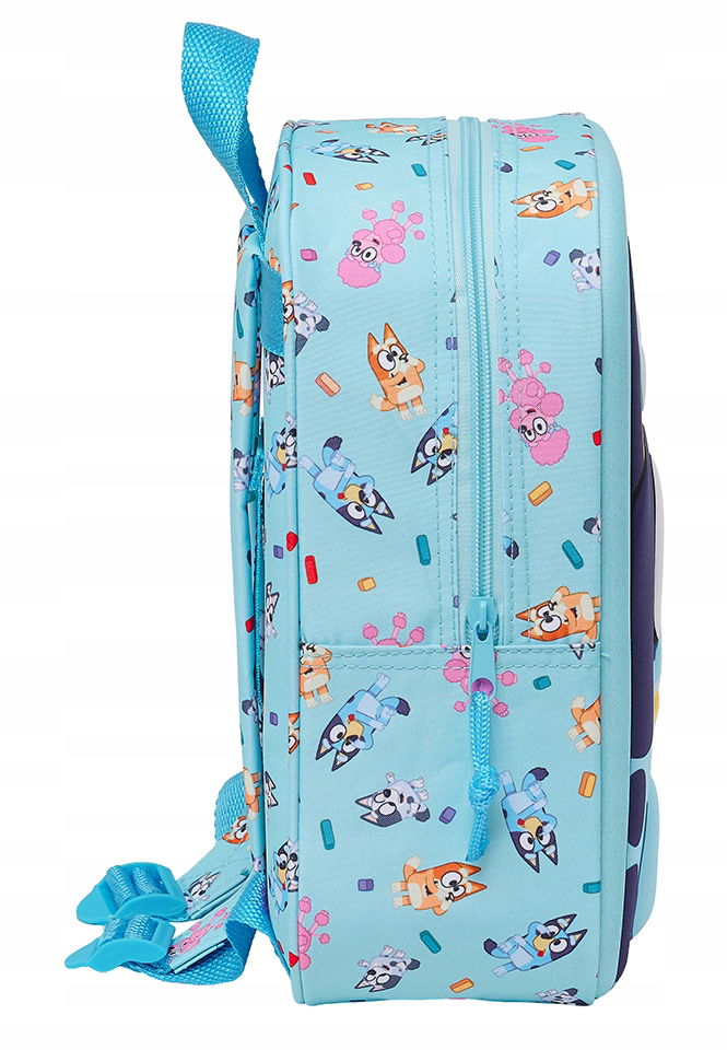 ➡️ Trójwymiarowy front 3D: Wytłoczony wizerunek bohaterów Bluey sprawia, że plecak wyróżnia się wśród innych, przyciągając uwagę i wzbudzając zachwyt dziecka.