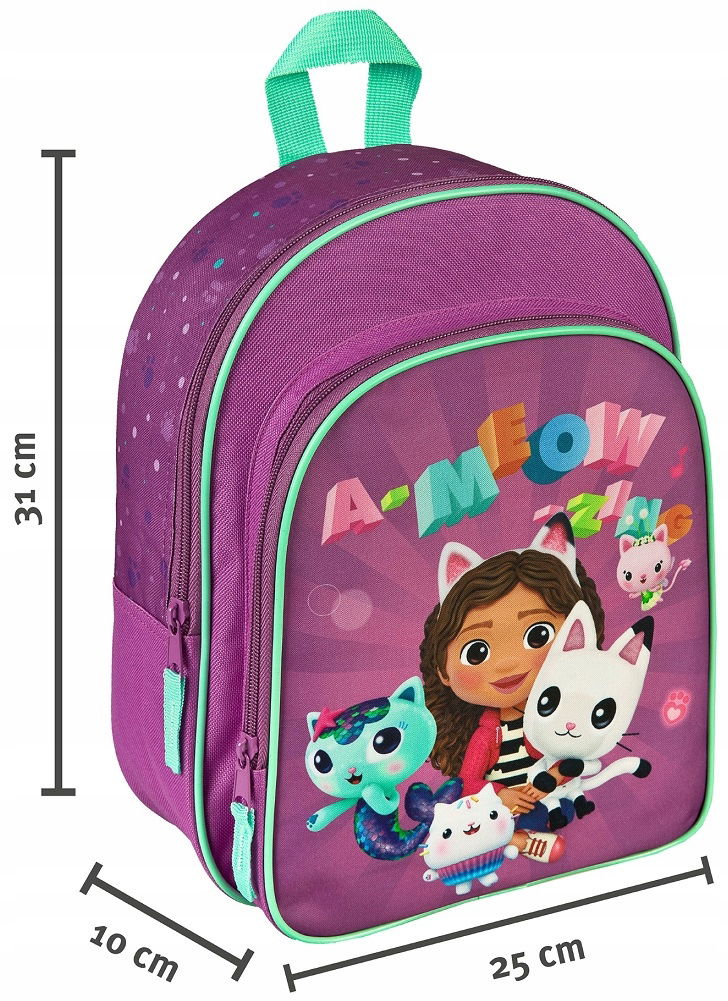 � Wymiary: 31 x 25 x 10 cm — optymalny rozmiar, aby zmieścić wszystkie niezbędne rzeczy dziecka, takie jak przekąski, ubrania czy drobne zabawki.