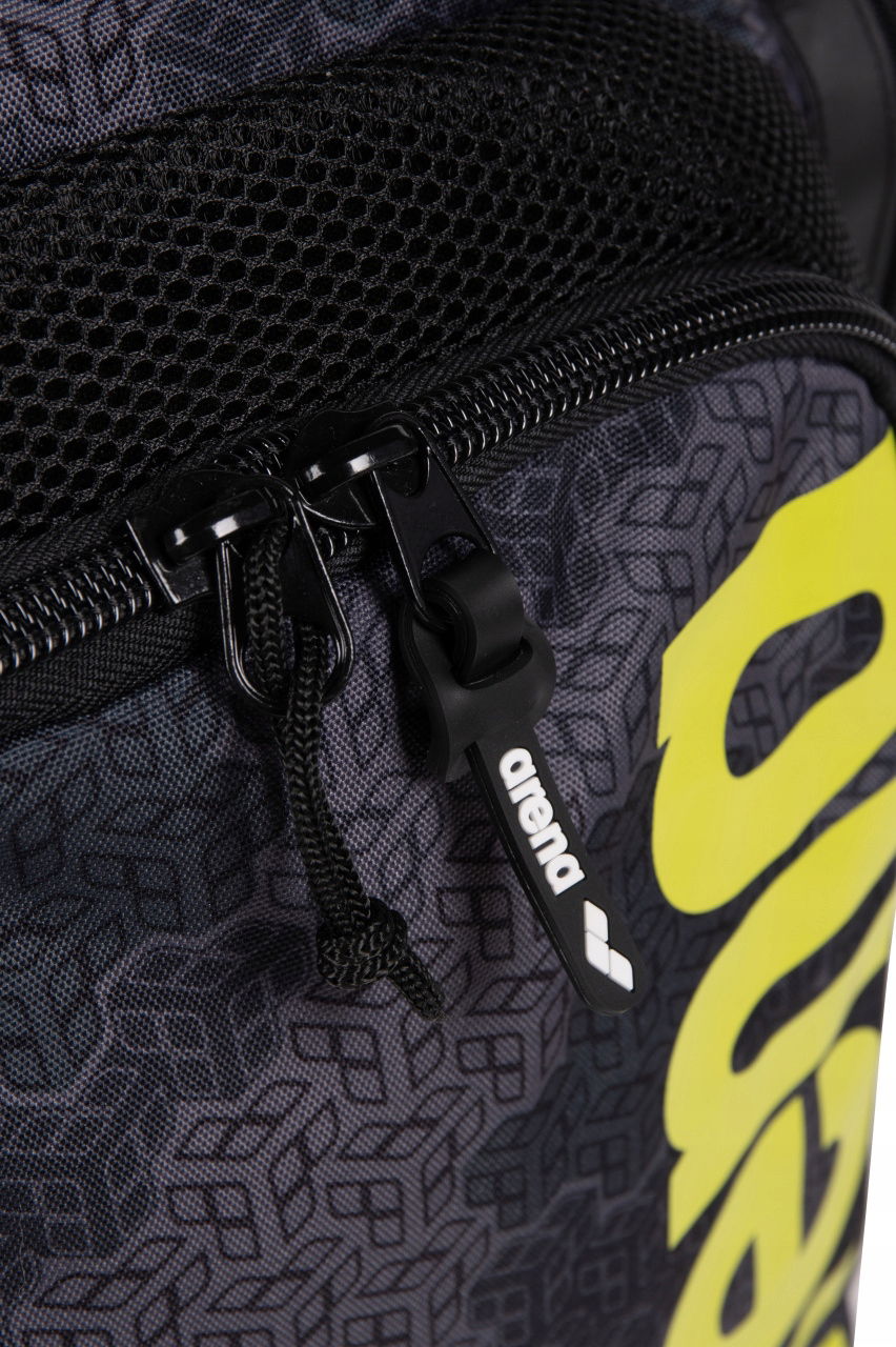 Co sezon marka Arena projektuje świeże, modne wzory dla swojego popularnego plecaka Spiky III Allover Print 35. Kompaktowy i jednocześnie przestronny plecak. Otwoerany i ładownay od góry z łatwością pomieści Twój sprzęt do pływania i niezbędne rzeczy. Przednia kieszeń z siatki jest przydatna do przechowywania m.in kluczy, portfela. Dodatki, takie jak butelka wody lub napój energetyczny, mieszczą się wygodnie w bocznych kieszeniach. Tylny panel jest miękki i oddychający, dzięki czemu nie powoduje pocenia się podczas noszenia, a pasek do wózka sprawia, że torba jest gotowa do podróży.