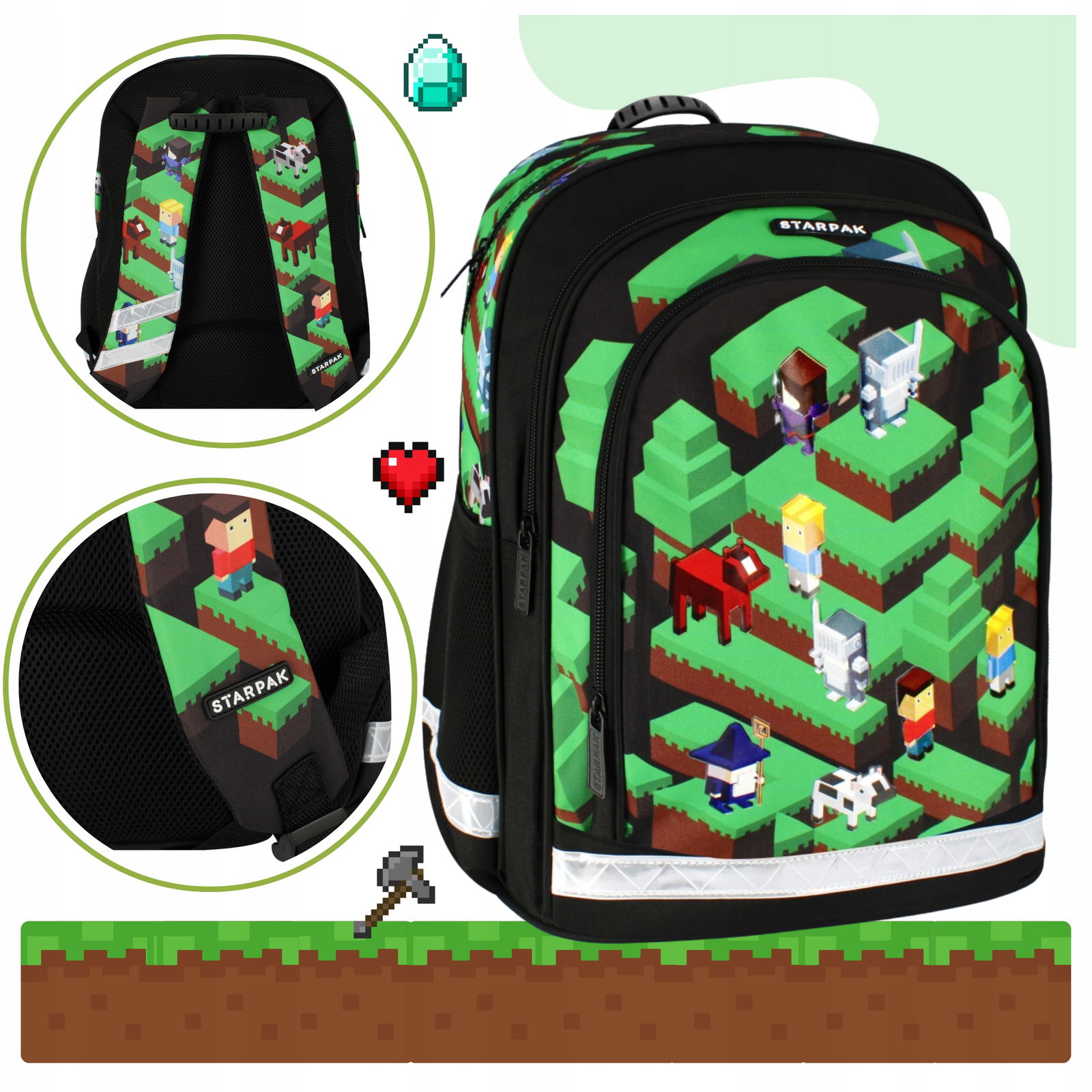 Plecak Szkolny Minecraft dla Chłopca 3 Komory z Odblaskami i Uchwytem 40x20