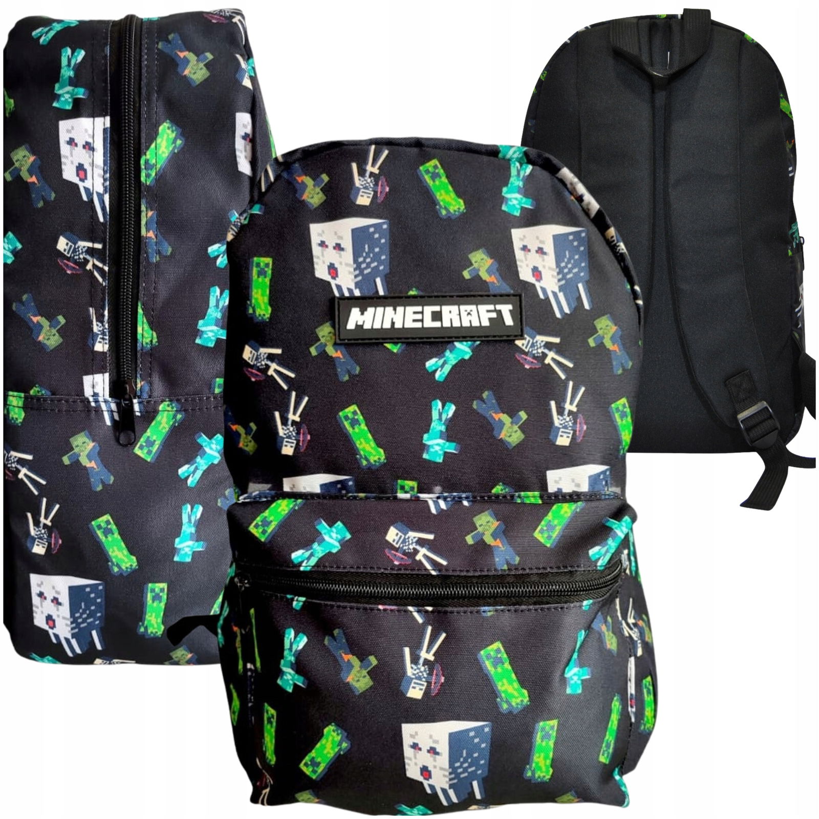 Plecak Szkolny Młodzieżowy Minecraft Creeper Tornister Czarny Duża Komora