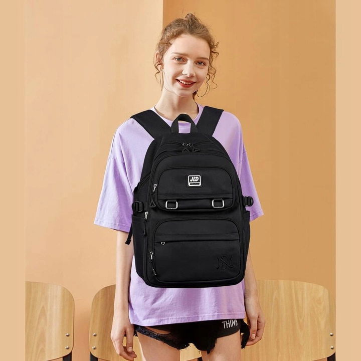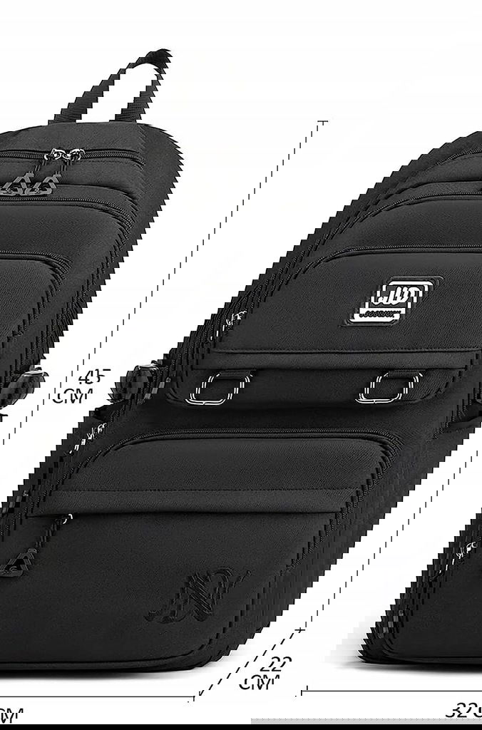 - ✅ Ilość komór: 2 duże + 3 przednie + 2 boczne kieszenie + 1 ukryta kieszeń z tyłu