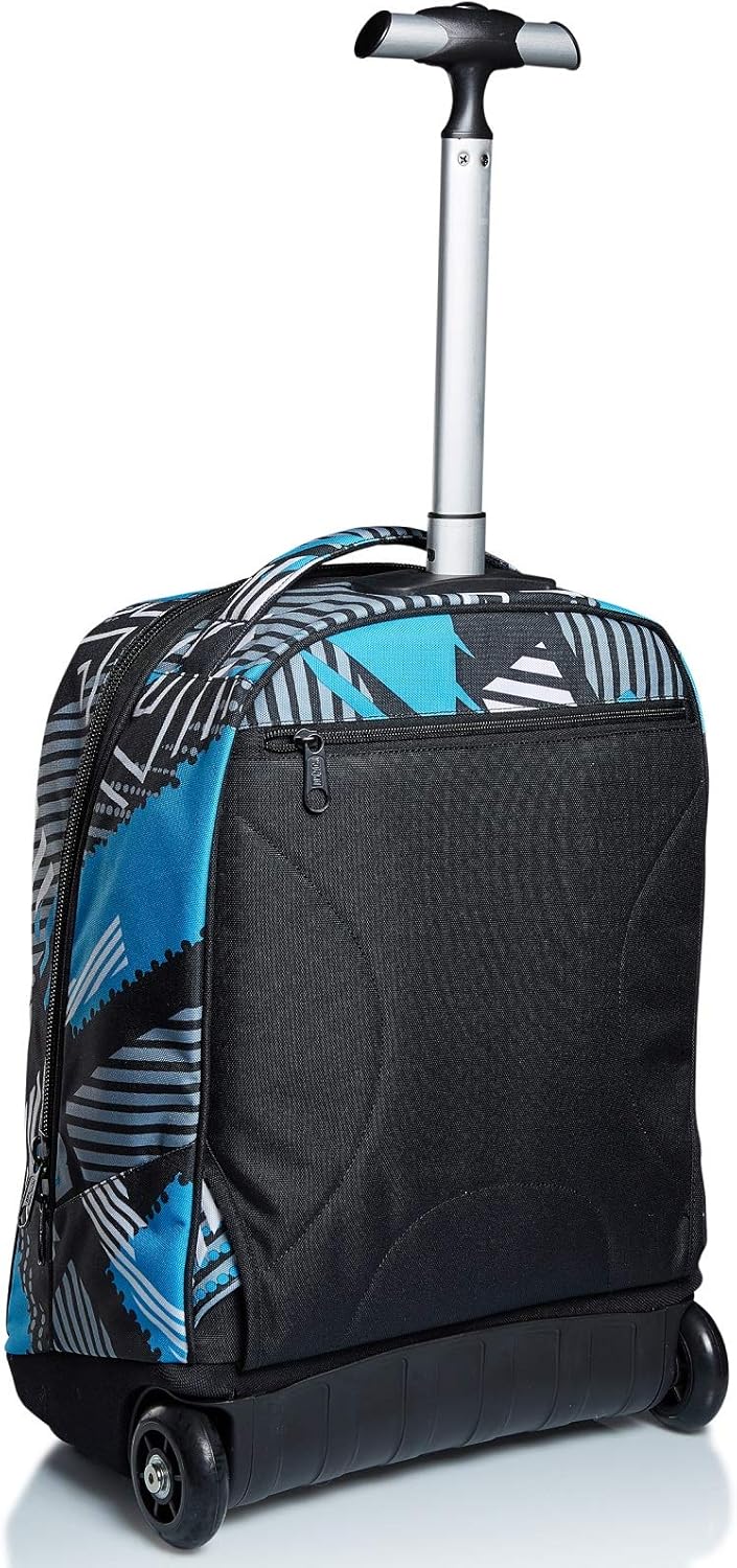 WYGODNY: Dzięki kółkom 75 mm i pojedynczej teleskopowej rączce z podwójną regulacją, tym wózkiem możesz pojechać wszędzie. Ponadto jest wyposażony w system crossover, co oznacza, że możesz podnieść paski naramienne do drążka, unikając ocierania się o podłoże podczas używania go jako wózka. Spód jest integralny i wstępnie uformowany w celu ochrony i stabilności zawartości. Jeśli chcesz używać go jako plecaka, jest również wygodny dzięki wyściełaniu oparcia i szelek.