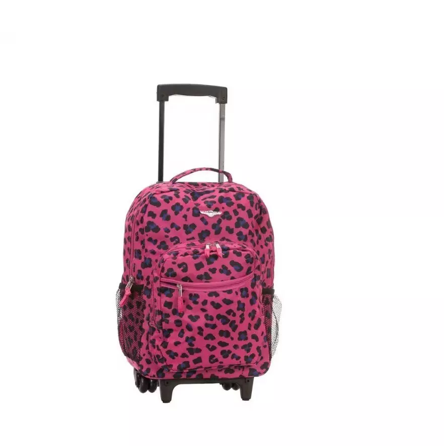 PLECAK SZKOLNY WALIZKA KABINOWA NA KÓŁKACH DZIECI MAGENTA LEOPARD ROCKLAND