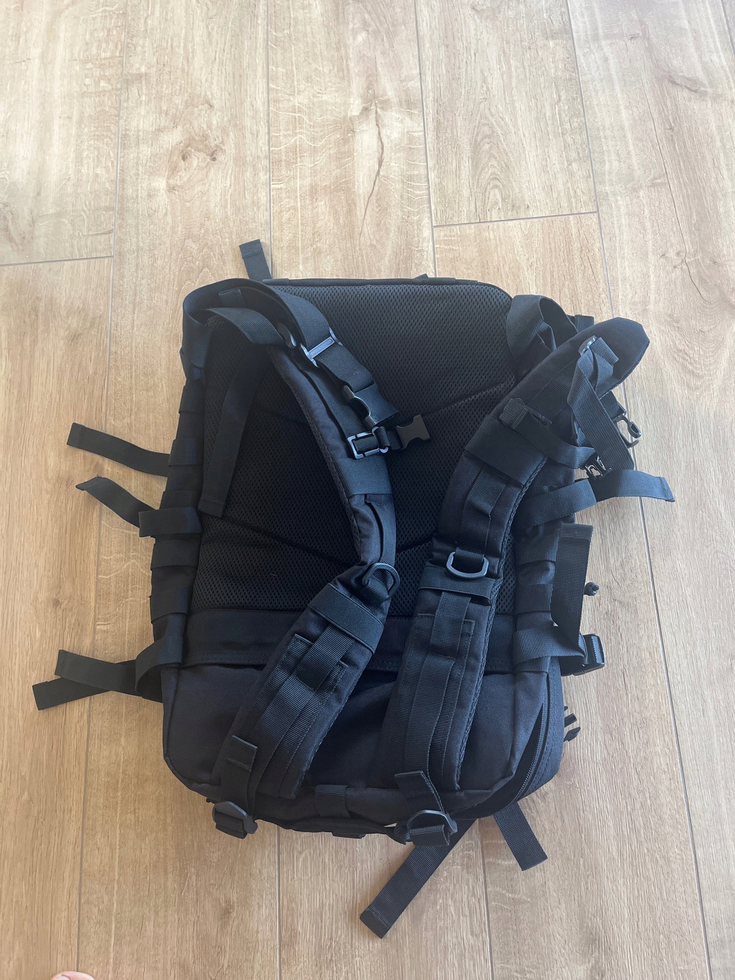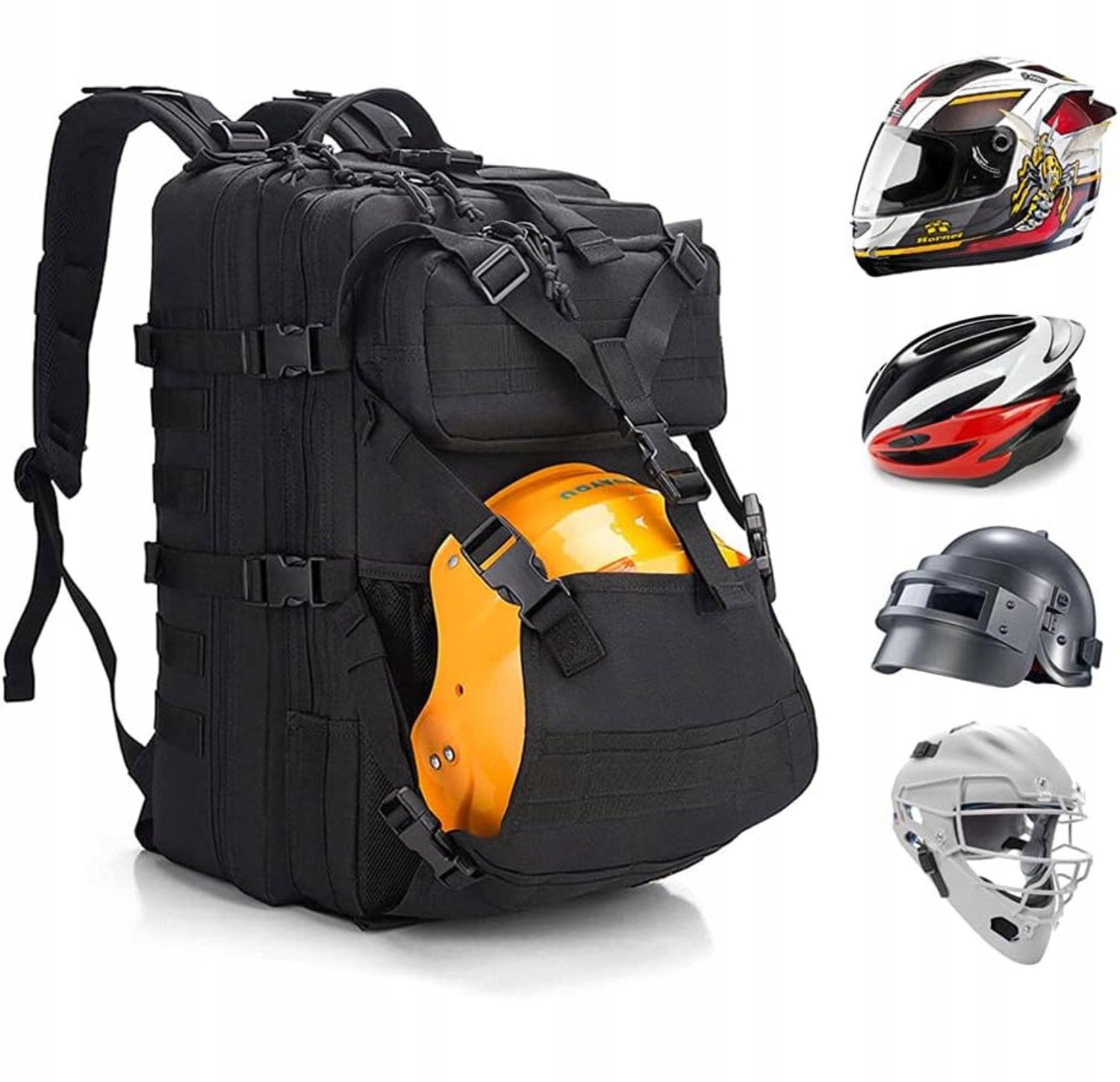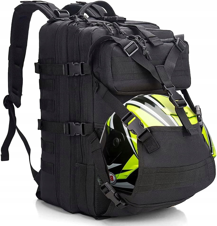Plecak pozwala na wygodne przenoszenie kasku motocyklowego lub innych dużych przedmiotów, a system MOLLE umożliwia przypięcie dodatkowego wyposażenia, np. butelki, latarki czy torby taktycznej.