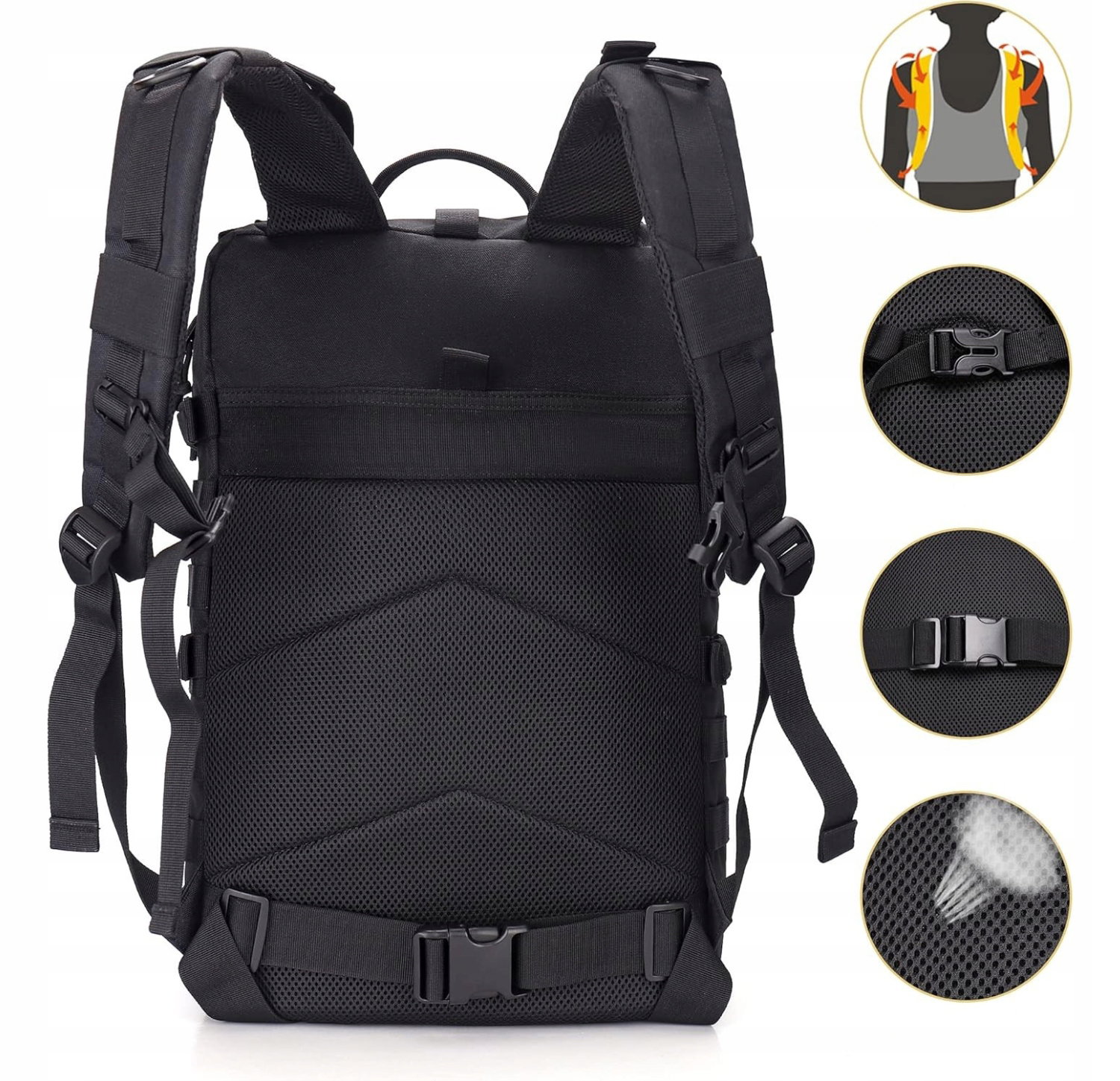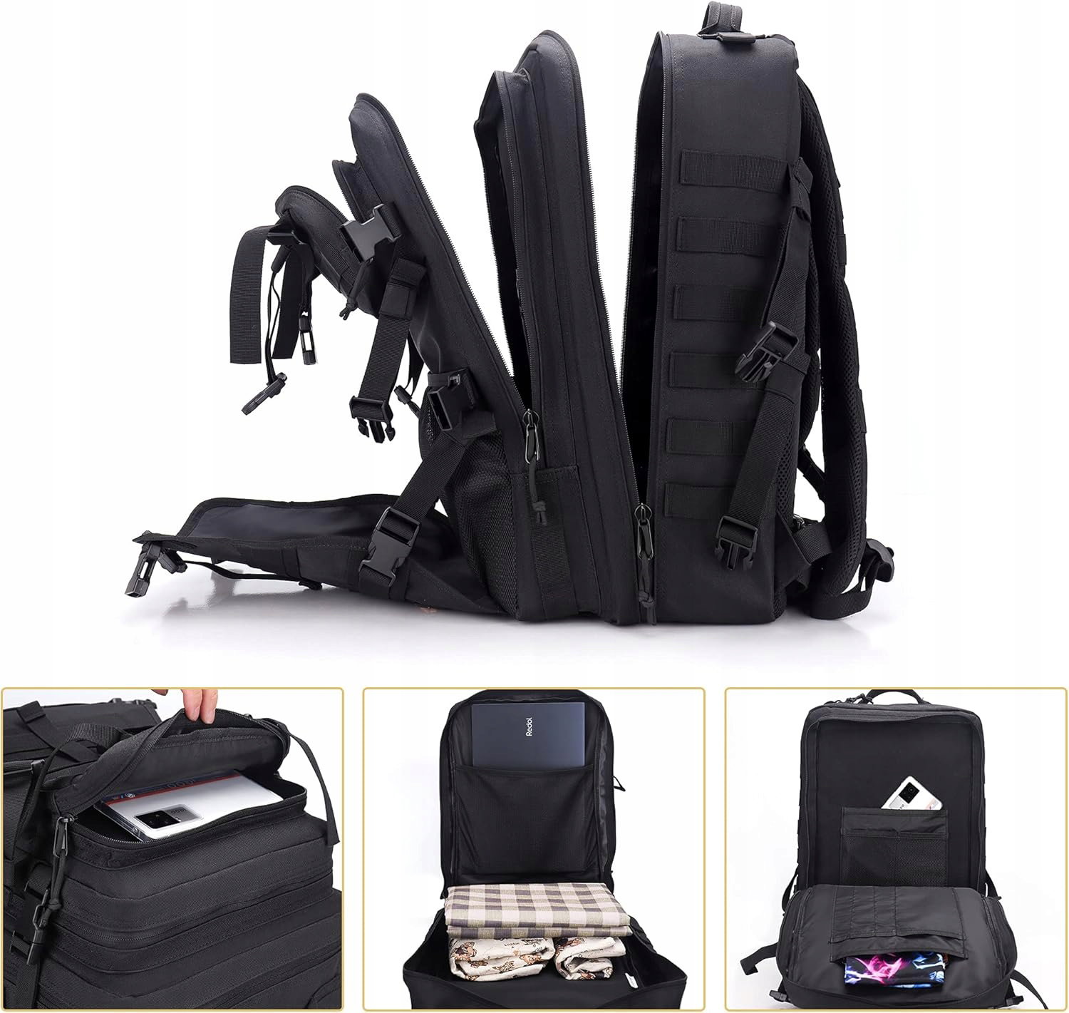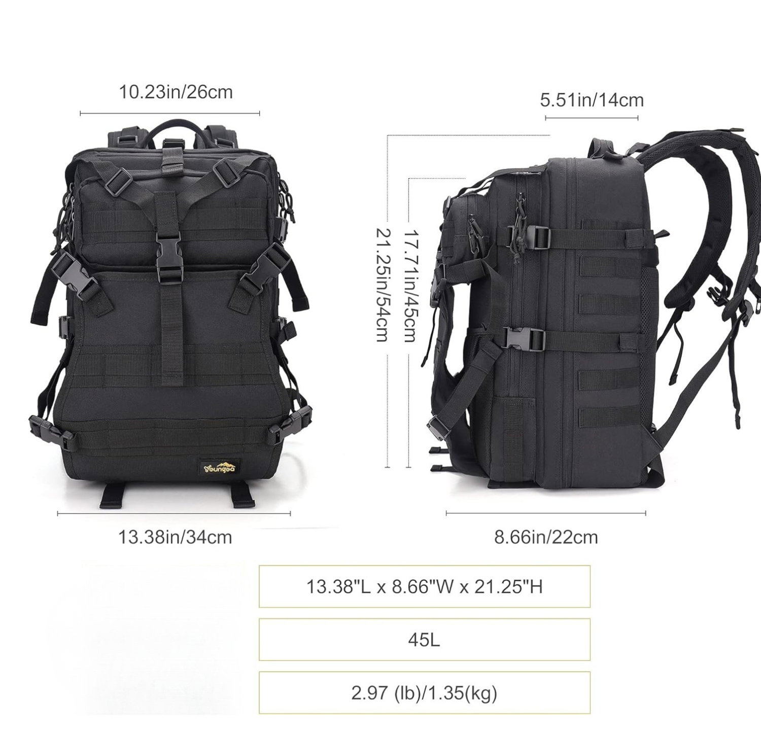 YOUNGOA Plecak Wojskowy 45L, Taktyczny Plecak dla Mężczyzn i Kobiet, Molle, z miejscem na kask, plecak motocyklowy z wieloma przegrodami, idealny do survivalu na świeżym powietrzu, biwakowania, sportu, trekkingu i wędrówek, czarny, Vacation.
