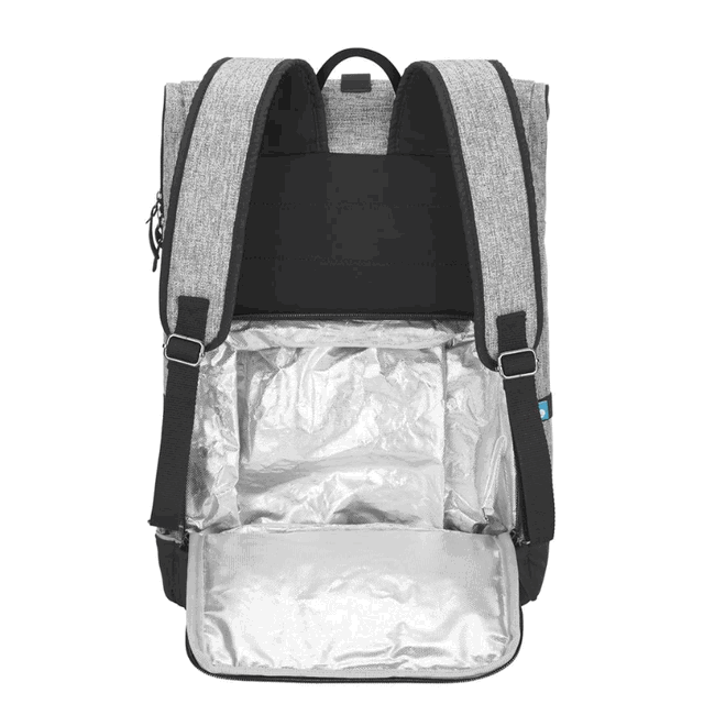 W tylnej części plecaka, w jego dolnej części, znajduje się duża kieszeń izotermiczna na zamek, która ma swoje osobne otwarcie. Ułatwia to zdobycie przekąski dla dzieci bez konieczności przeszukiwania całego plecaka.