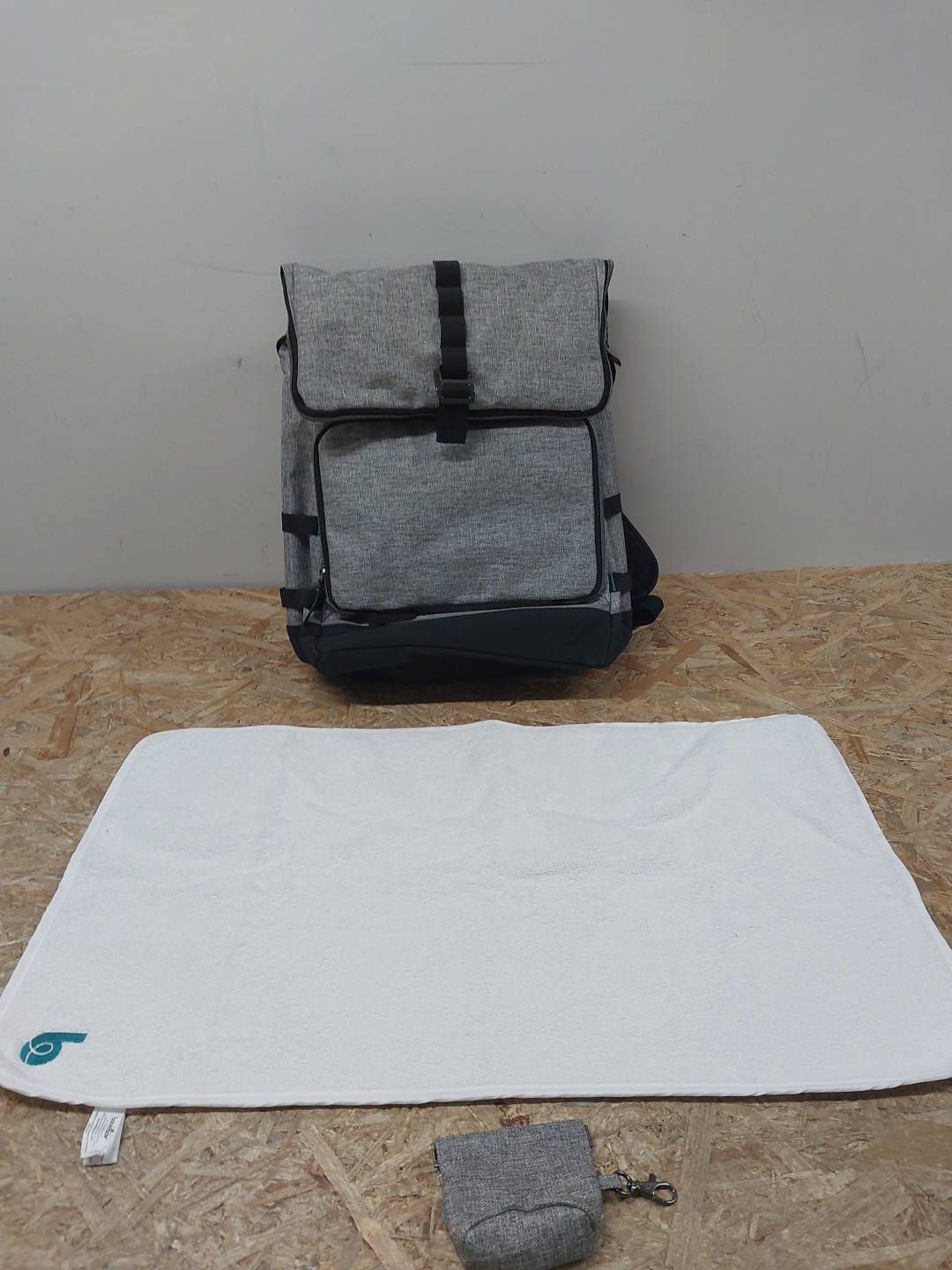 Na przedniej stronie plecaka jest samodzielna kieszeń na zamek. Otwierając kieszeń, uzyskasz dostęp do kilku przegródek na chusteczki, pieluchy, kremy, a także wyjmiesz rozkładaną matę do przewijania, która zapewni higieniczne warunki w dowolnym miejscu.