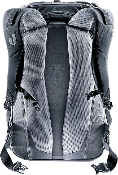 Podkładki Airstripes z kanałami wentylacyjnymi zapewniają swobodną cyrkulację powietrza na 80% pleców dzięki niewielkiej powierzchni stykowej – jednocześnie plecak leży kompaktowo i bezpiecznie z tyłu