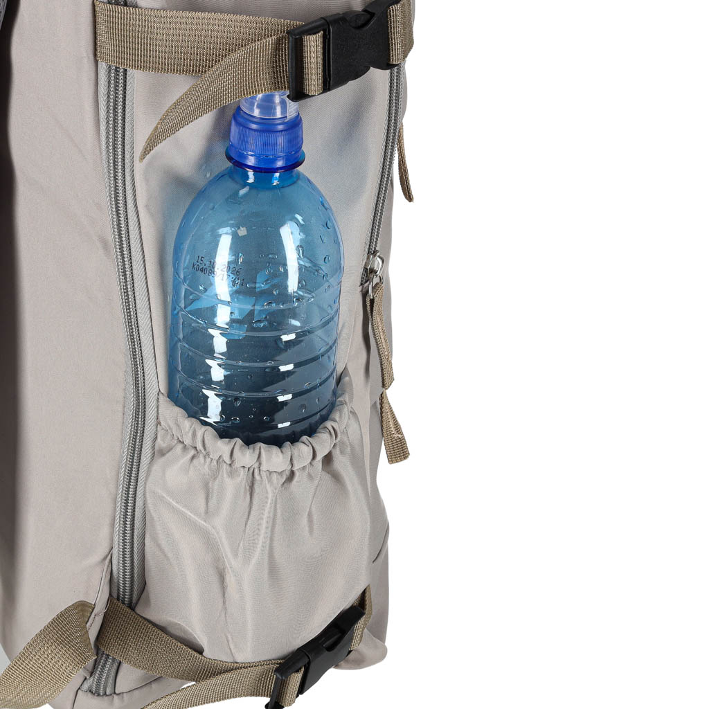 TRZY KOMORY I PRAKTYCZNE KIESZENIE - Plecak posiada trzy pojemne komory, które ułatwiają organizację rzeczy podczas podróży. Dodatkowe kieszenie z przodu sprawdzą się na drobne akcesoria, natomiast boczne kieszenie z elastyczną gumką pozwalają wygodnie przechowywać butelkę z wodą lub termos. Taki układ ułatwia szybki dostęp do najważniejszych przedmiotów.