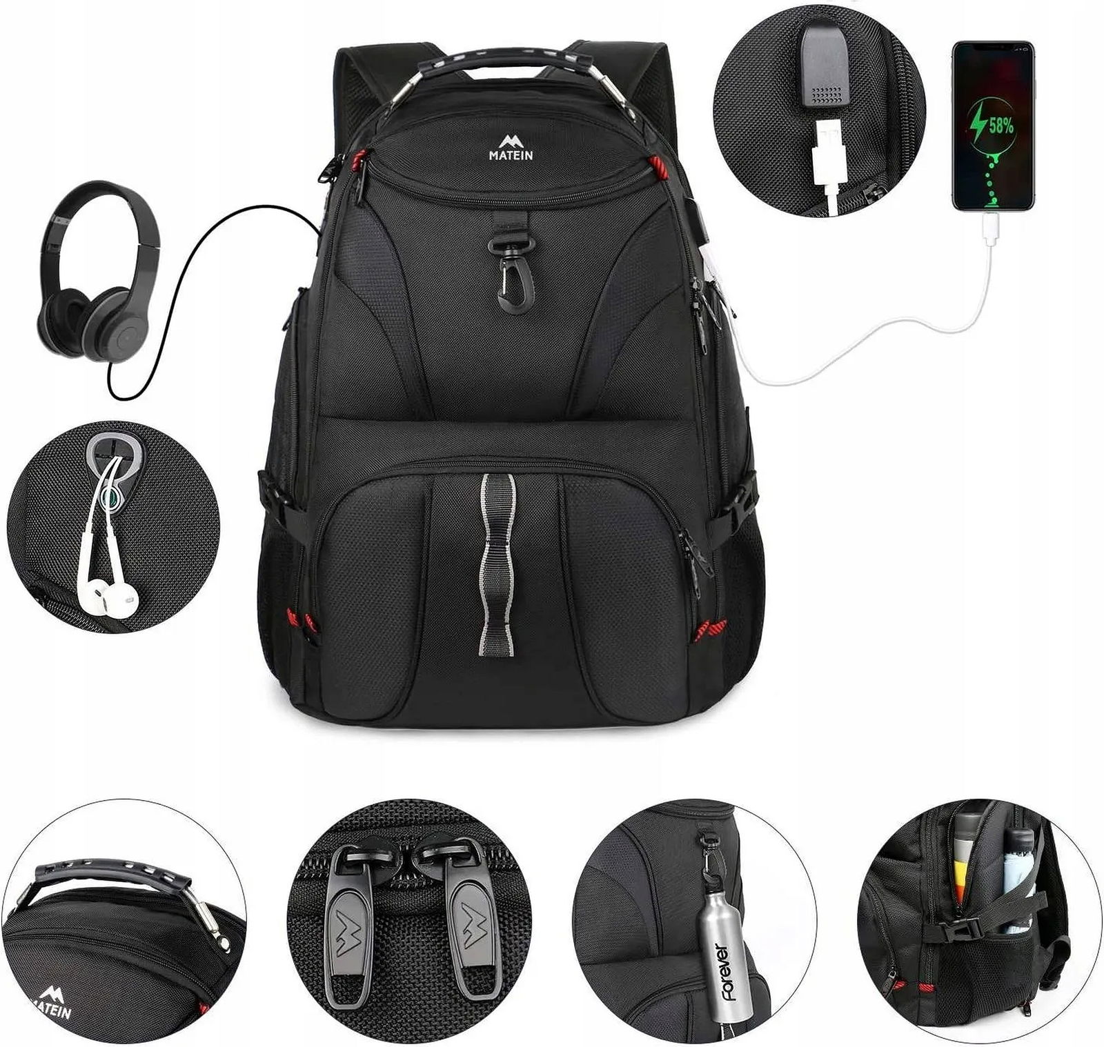 Plecak wielofunkcyjny na laptopa Matein 15,6" MATEIN z USB czarny 1211