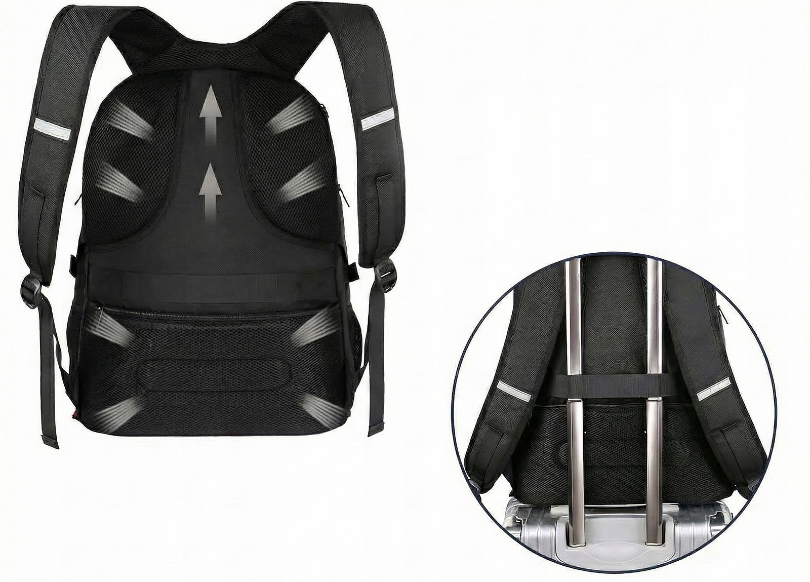 - Komfort noszenia: Wentylowane plecy z systemem przepływu powietrza i miękkie szelki.