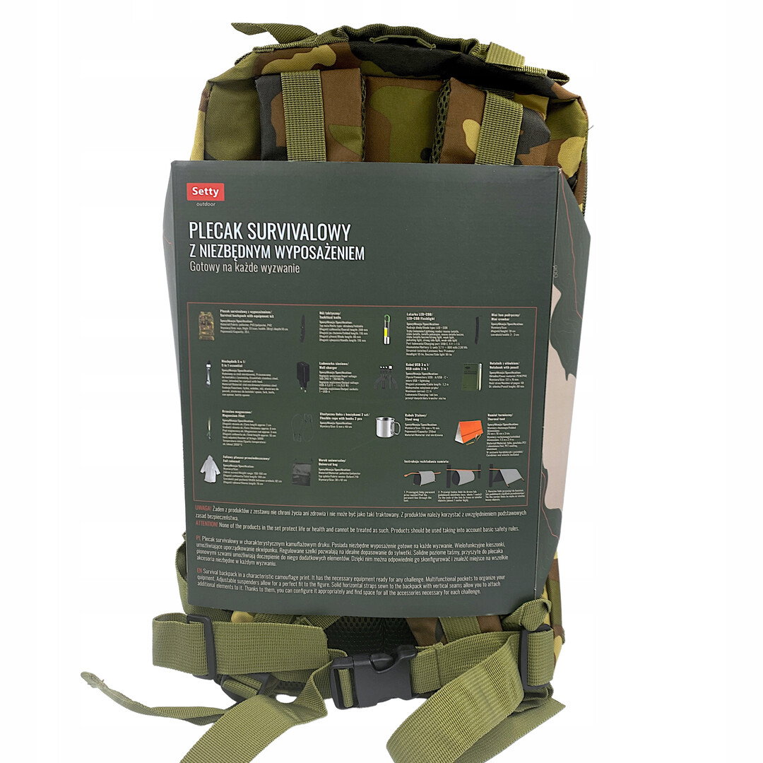 Plecak wojskowy Setty to doskonały wybór dla każdego, kto potrzebuje pojemnego i trwałego rozwiązania. Z pojemnością od 41 do 60 litrów, zapewnia odpowiednie miejsce na wszystkie najważniejsze przedmioty.