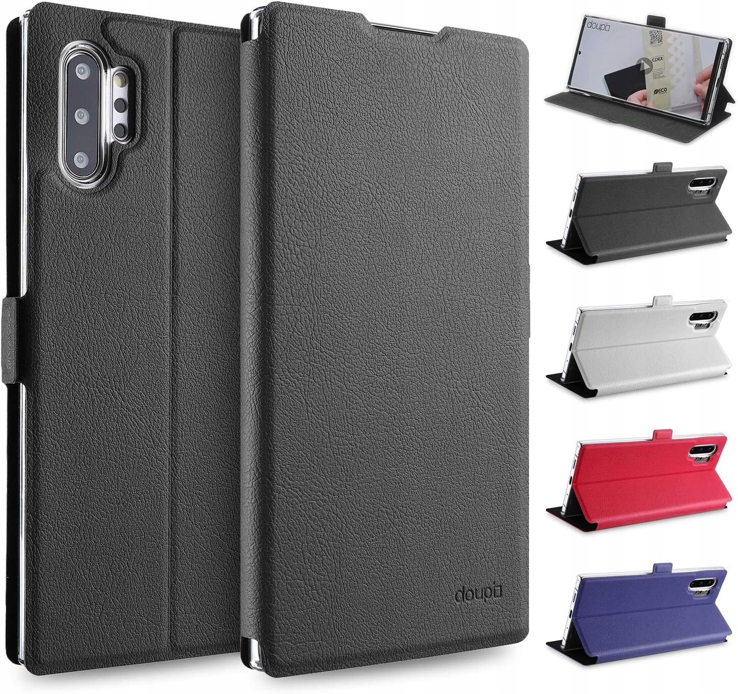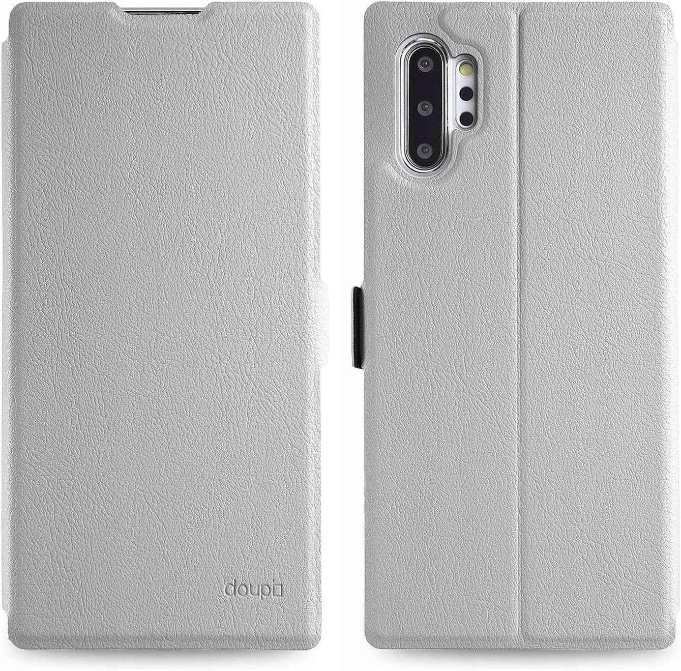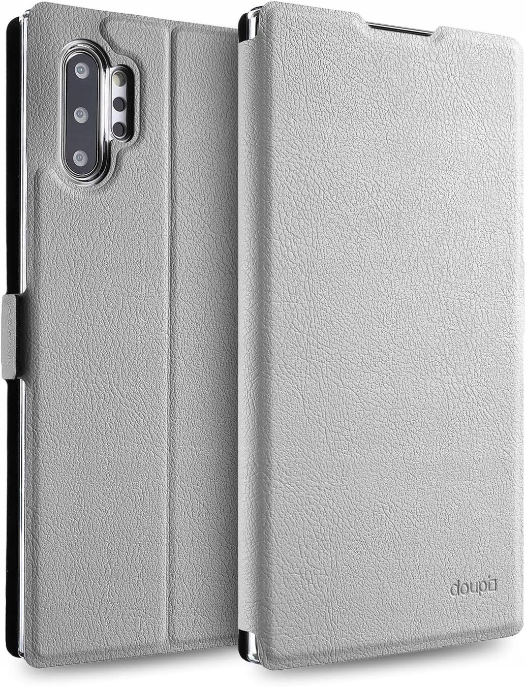 Doupi Etui z klapką do Samsung Note 10 Plus, Deluxe etui ochronne z magnetycznym zamknięciem, etui z klapką, etui na telefon komórkowy, stojak, białe